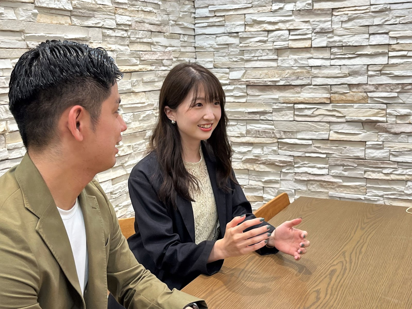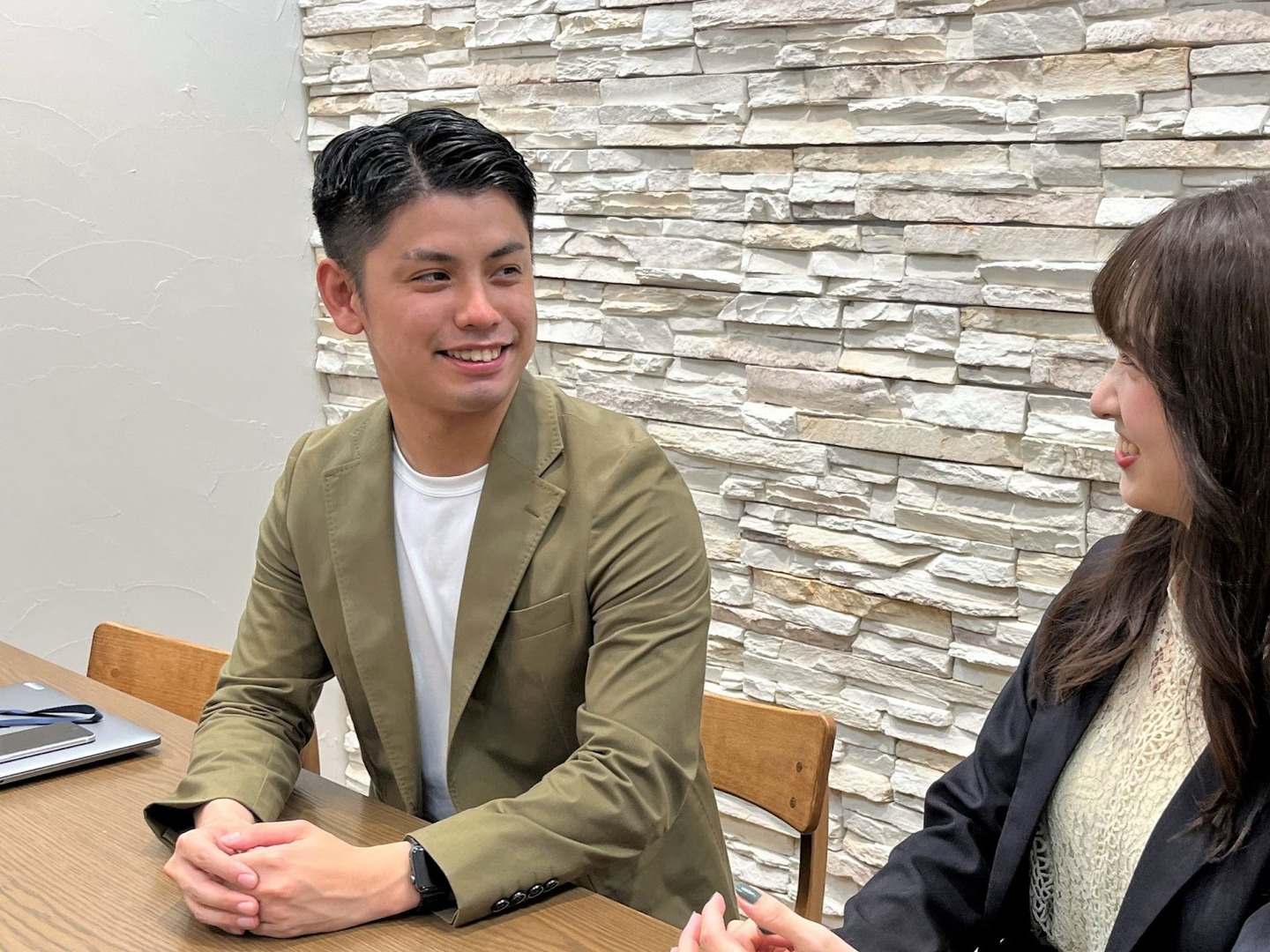 Hさん(向かって左):不動産企業での営業を経て、2019年にウエディングパークに中途入社。Photoraitの営業を担当。現在は採用にも携わる。ウエディングパークへの入社の決め手は、「チームでやる」という社風や人に惹かれたこと。