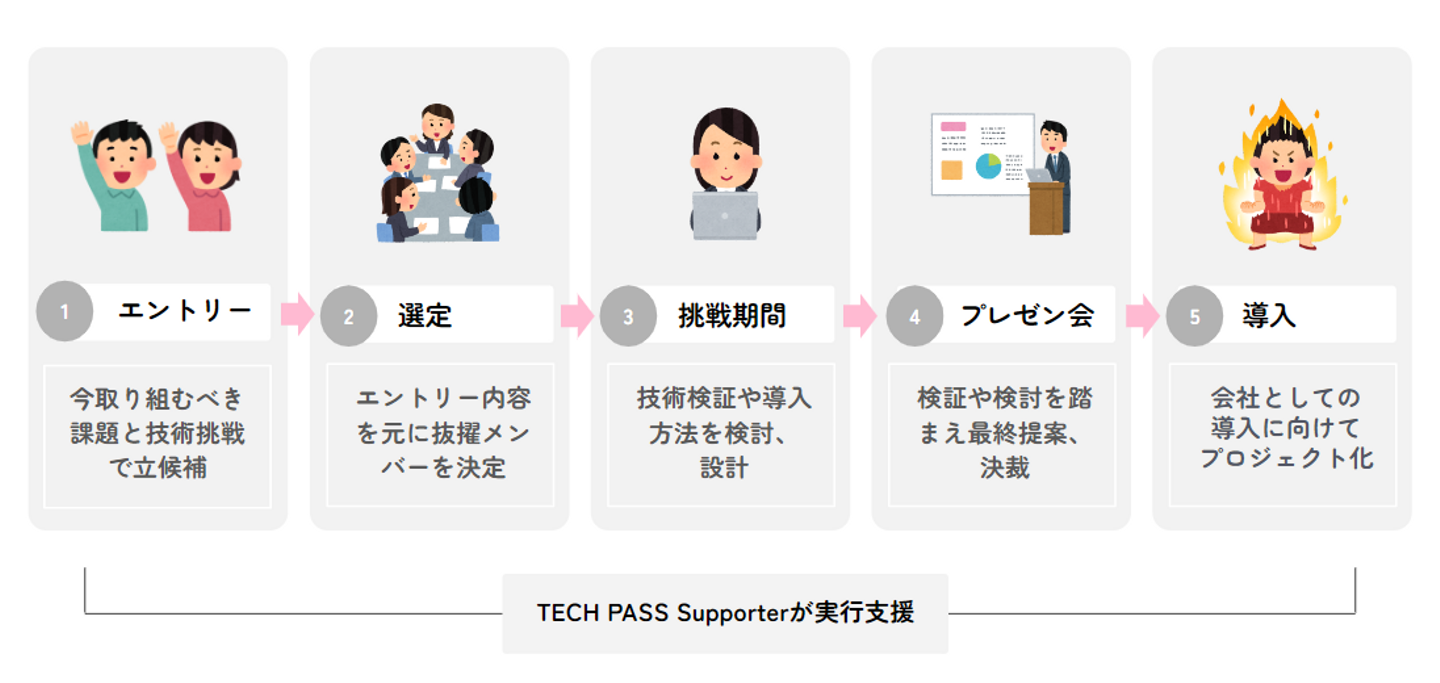 「TECH PASS」とは、立候補から選ばれた選抜メンバーが技術挑戦をできる機会です。