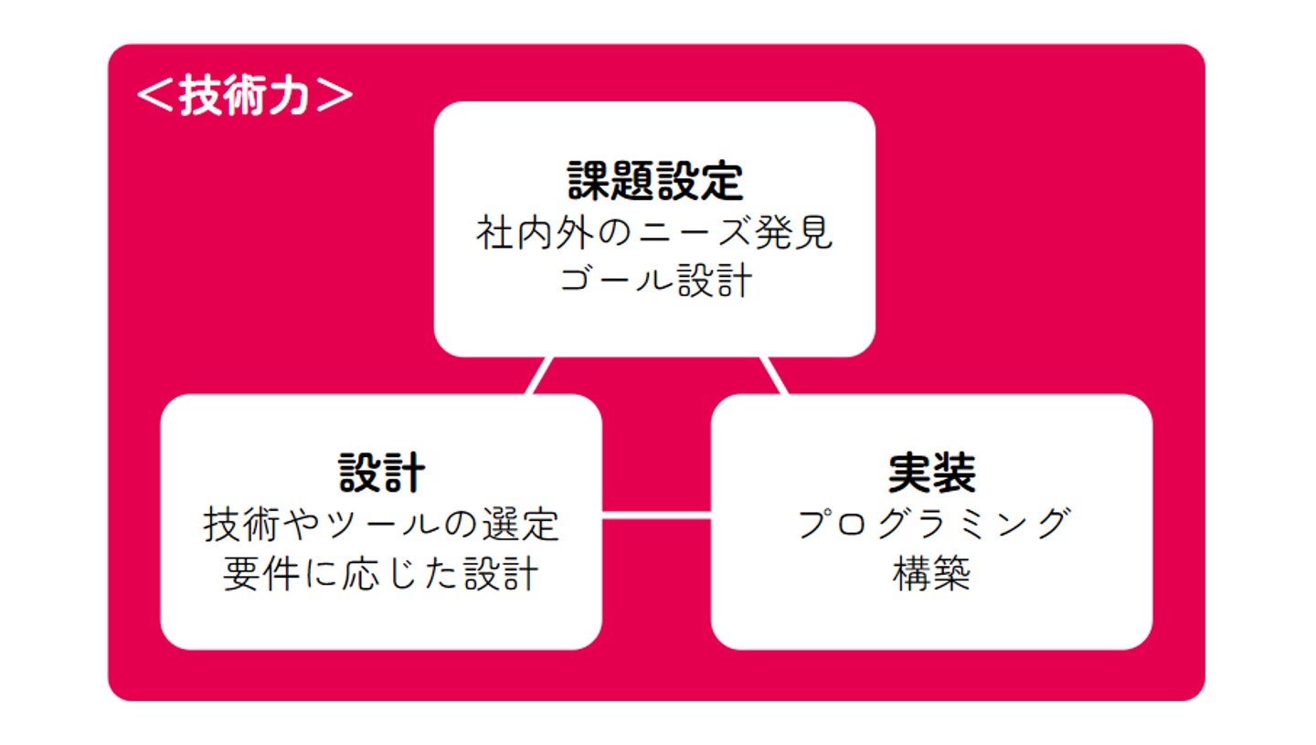 ここで指す「技術力」とは、単純なスペックだけではなく、事業成長に向けて社内外のニーズを捉え、課題を技術的アプローチで解決する複合的な力を指します。