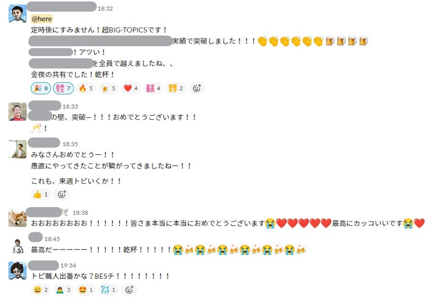 目標の達成に関するSlackの投稿とコメント ーーその中で、営業メンバーはどんな仕事をしているのでしょうか。