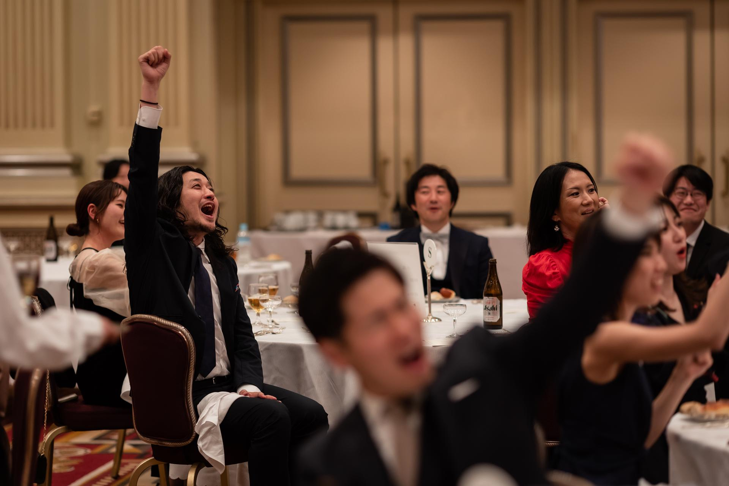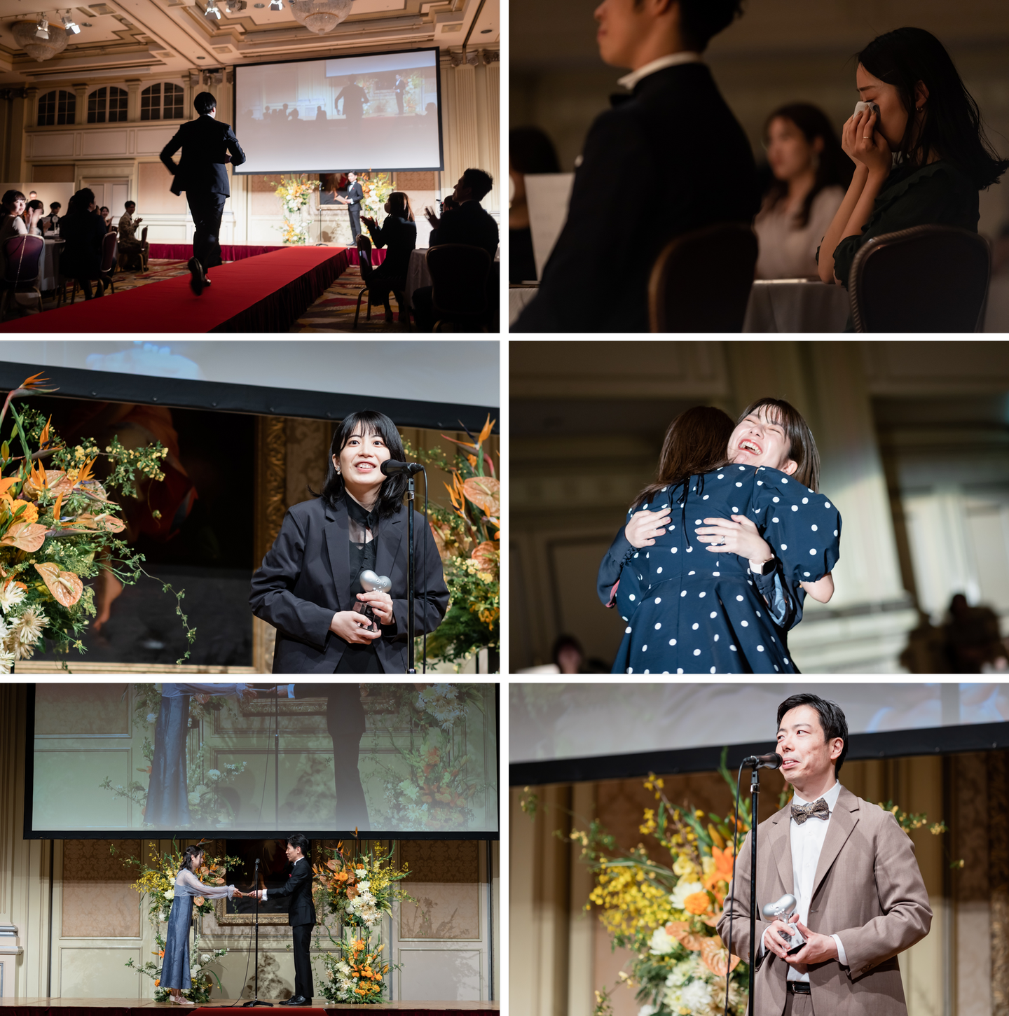 「デザイン経営」へのチャレンジをおこなったり、部署の大目標を達成まで導いたり。まさにスローガンの「つなおも」を体現し、部署やチームの枠を越え全社を巻き込んで活躍したメンバーが表彰をされました。念願の受賞に涙をしたり、この半期を一緒に頑張ってきた仲間と抱き合う姿も。