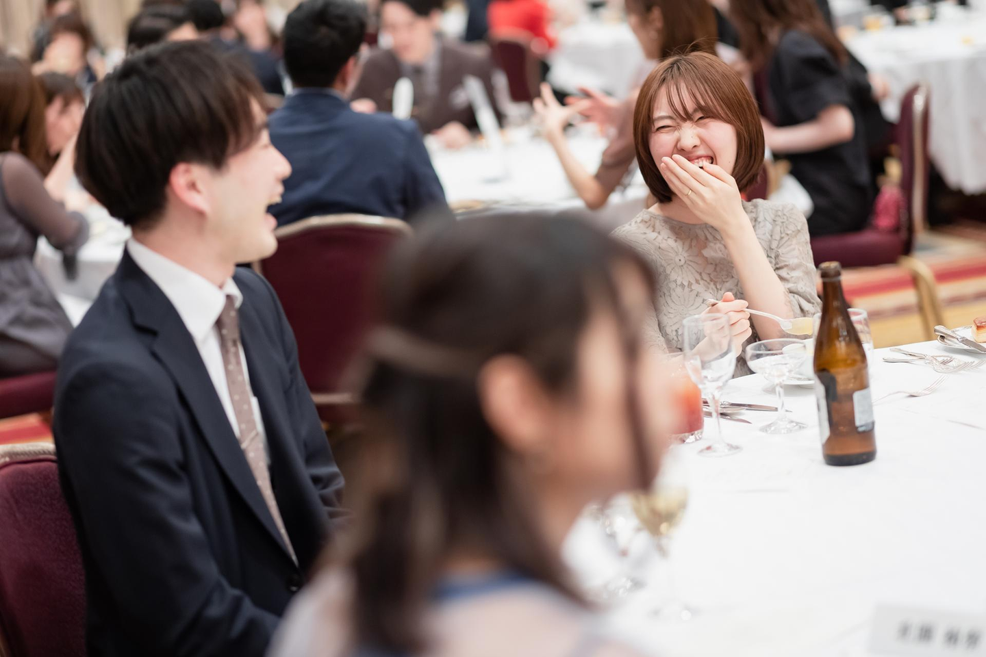 懇親会中は、部署や職種などをシャッフルした座席に座り、垣根を越えたコミュニケーションを。(オンライン参加メンバーはZoomにて歓談を楽しみます)コンセプトをもとにしたコンテンツから、今流行りの題材を扱うコーナーまで。この半期を労いながら、全社員で楽しみました。