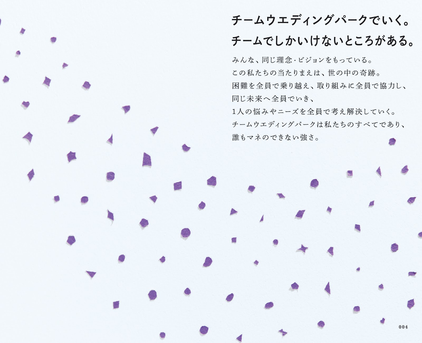 「チームウエディングパークでいく。チームでしか行けないところがある。」