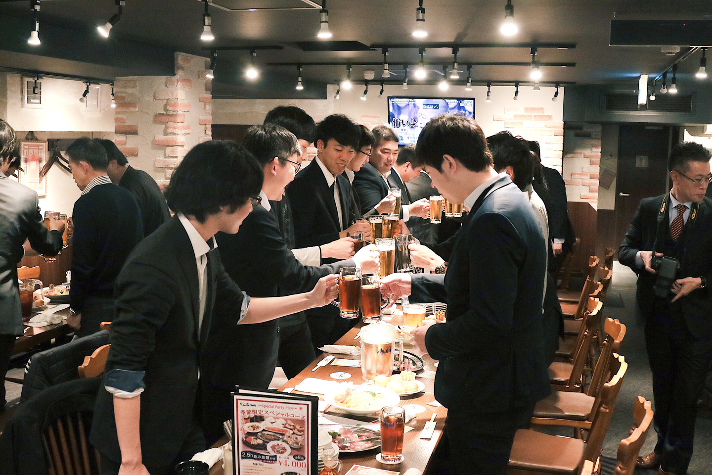 この会の参加者は社員だけでなく、ビジネスパートナー様、そして来年度の内定者さんにも声を掛けて、毎年50名以上が集まる一大イベントです。