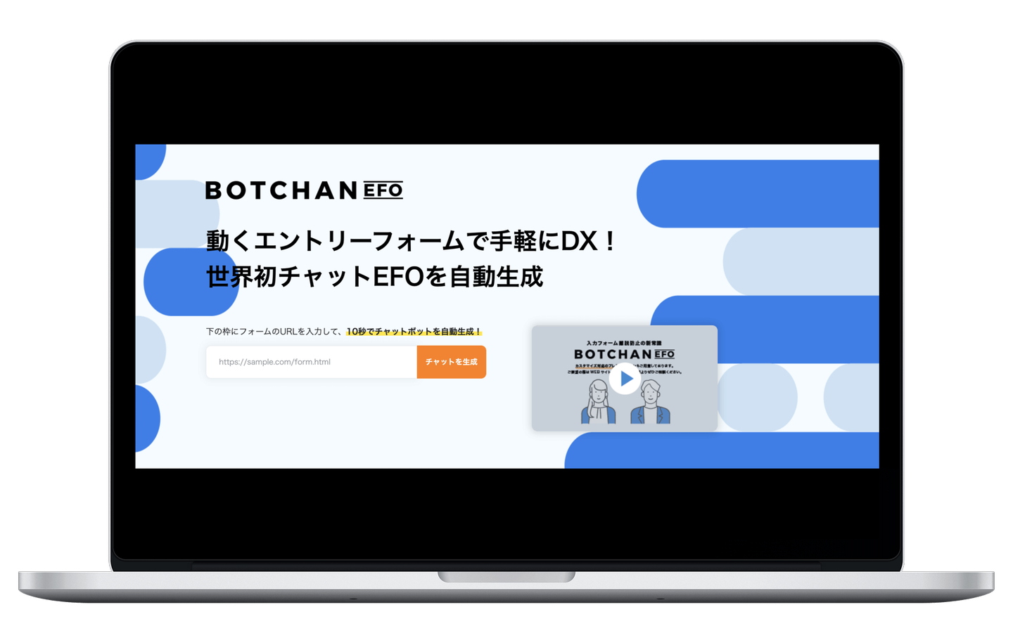 例えば今年の5月にリリースした新しいプランのBOTCHANは、自社サイトの問い合わせフォームのURLを入力するだけで、AIが自動でチャットボットを作ってくれるのね。