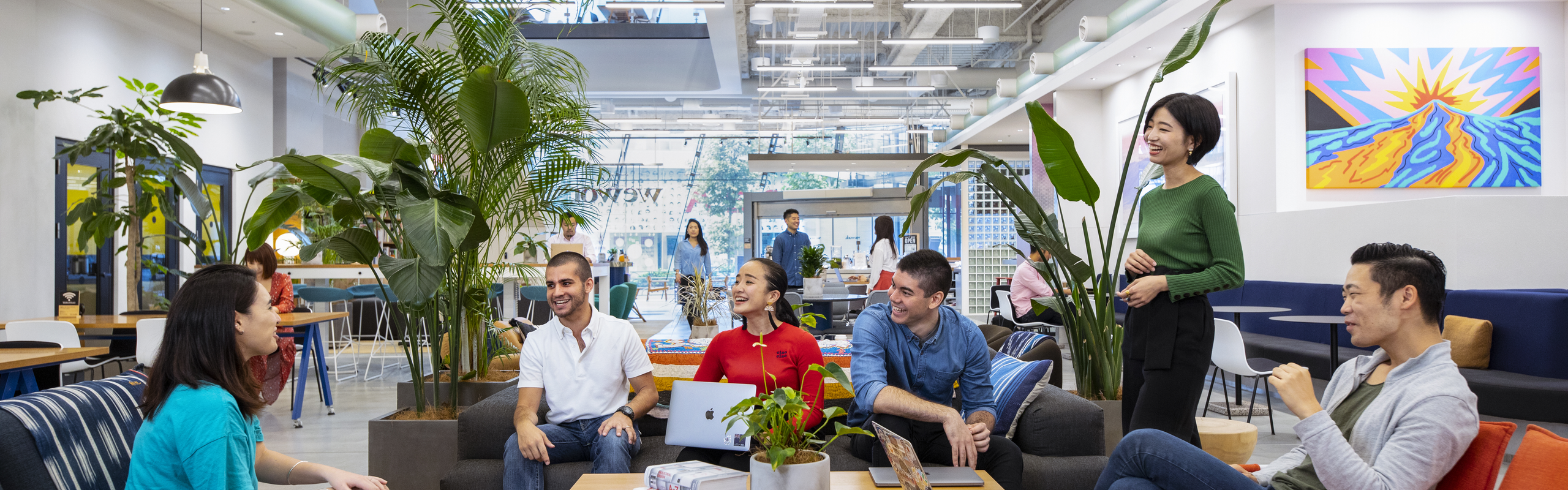 2010年に米・ニューヨークで創業した WeWork は、世界37か国・600拠点以上、国内約40拠点でフレキシブルオフィスを展開しています。(2024年1月時点) WeWork Japanは、2018年2月に国内初となる拠点を東京で開設。創造性や生産性が高まる空間デザインを用いたワークスペースにおいて、月単位での契約、1名から数百名規模の拡大・縮小や、国内30拠点以上の横断的な利用が可能なプロダクトや、柔軟なオフィスソリューションを提供しています。