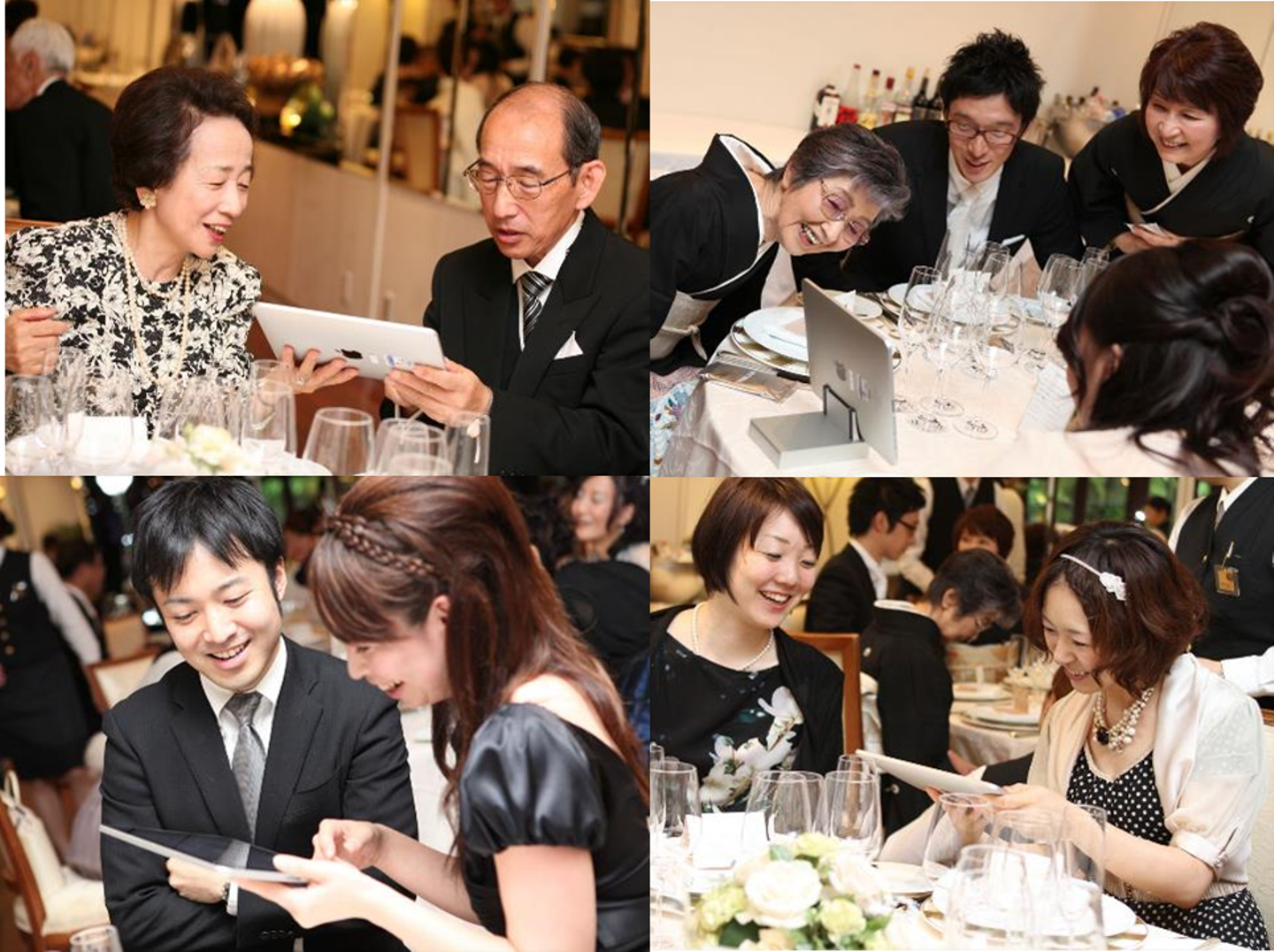 で、驚いたのは、普通新郎側の友人のスピーチのときって、新婦側は知らないし興味がないからご飯とか飲み物とか飲むと思うんですけど、その結婚式はみんなタブレットを触って、その人を探すんですよ。