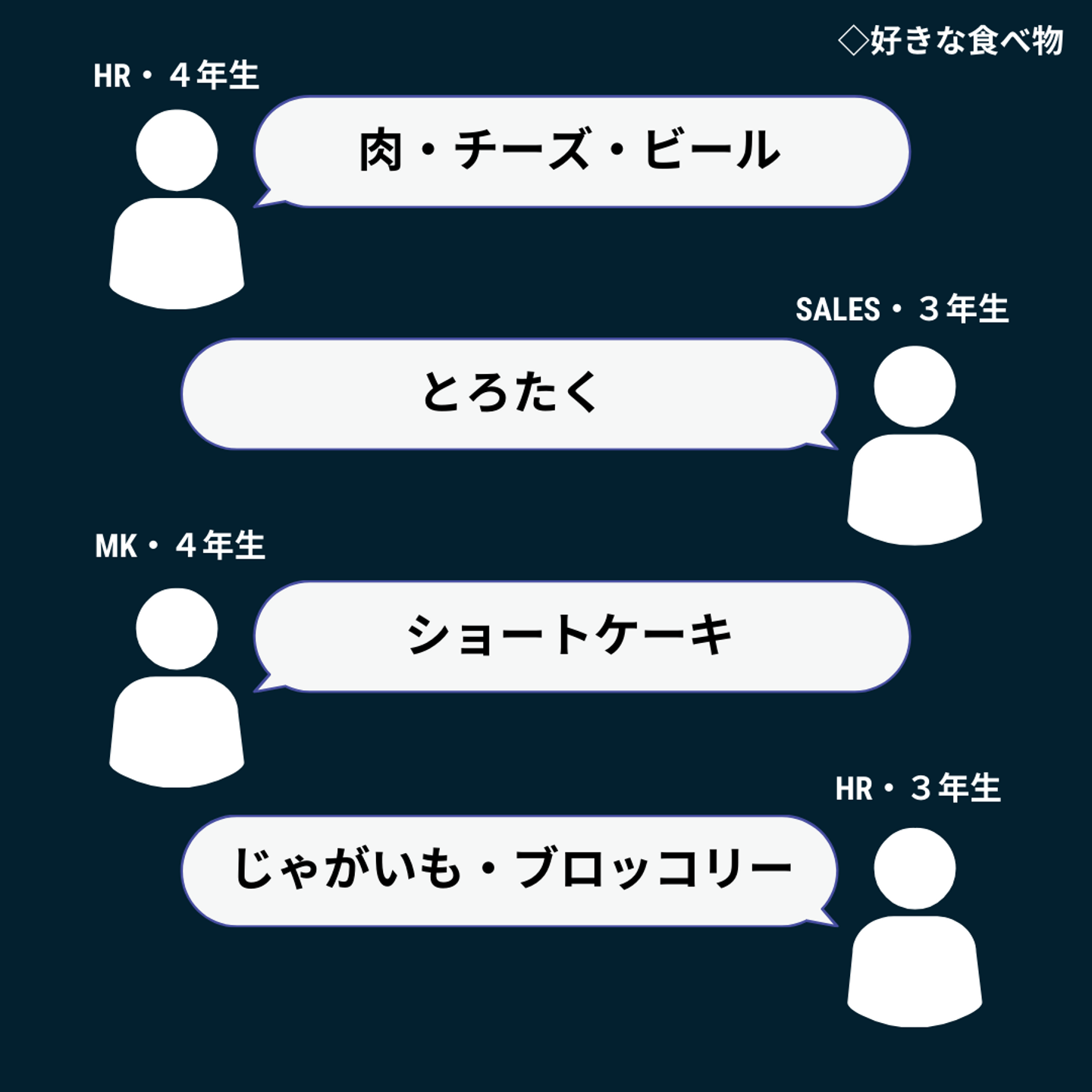次に好きな食べ物を聞いてみました。Widsleyでは定期的にインターン生交流会を開催しており、その時食べるものの参考にしようと思ったのですが、みなさん結構バラバラで余計に迷っちゃいますね笑