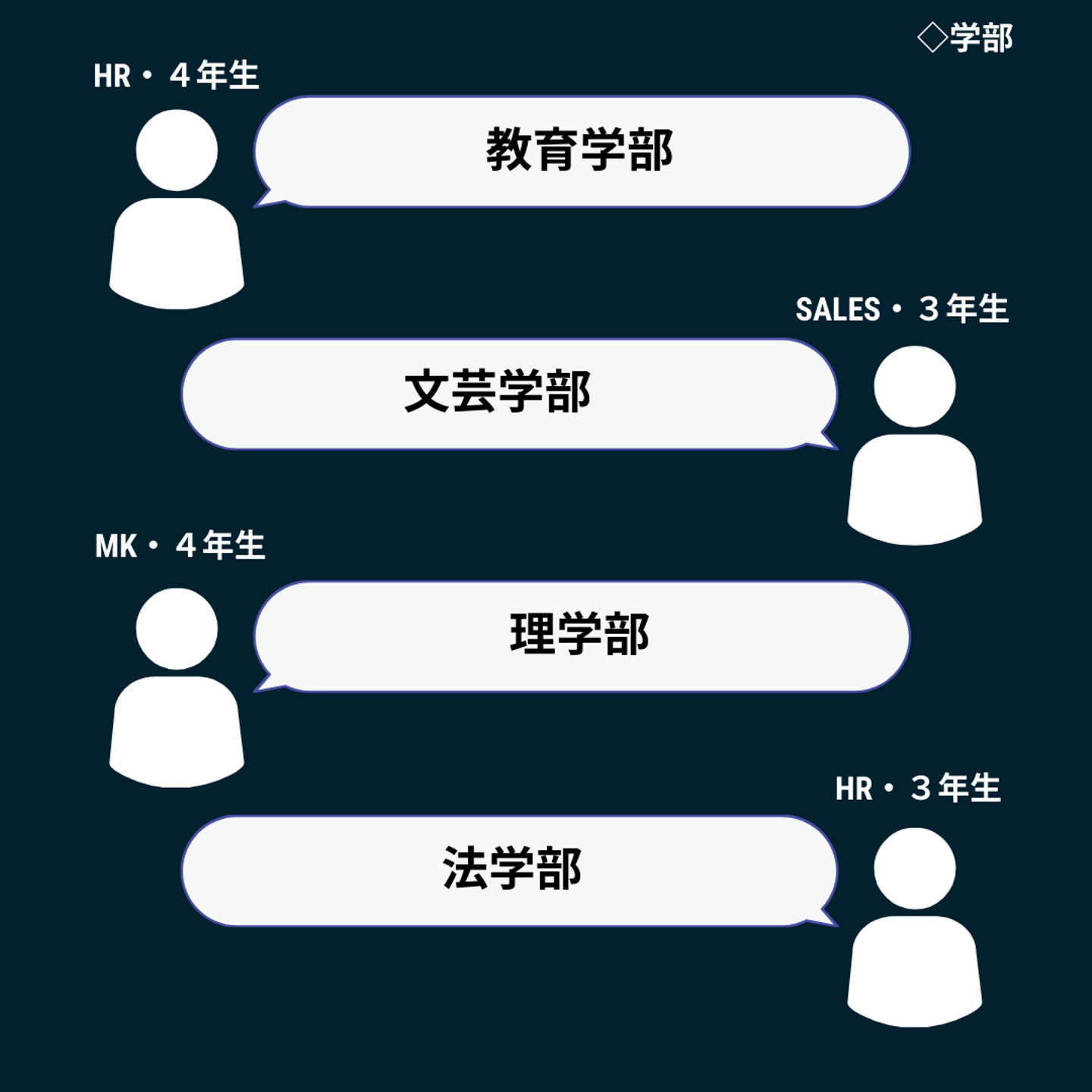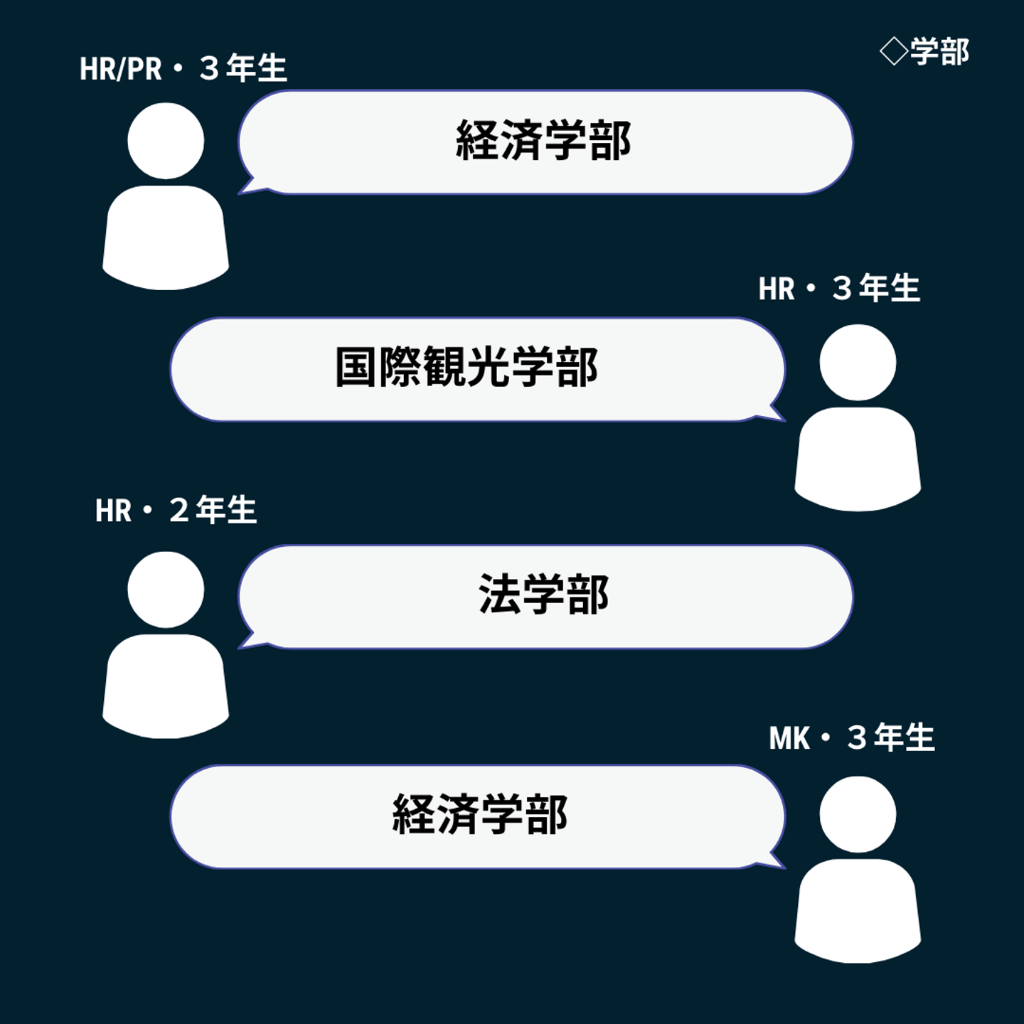 まずはインターン生に学部についての質問!学年は3・4年生がほとんどで、学部の分布に関しては、法学部と経済学部が若干名多いですが、文理問わず、様々な学部のインターン生が在籍しています。