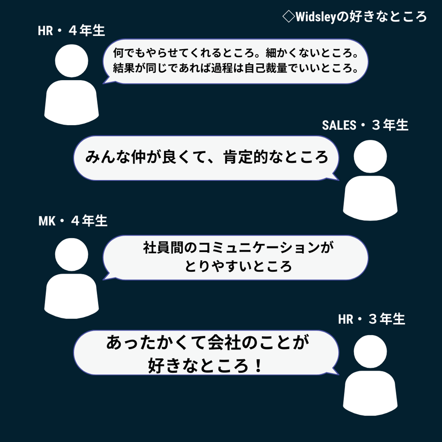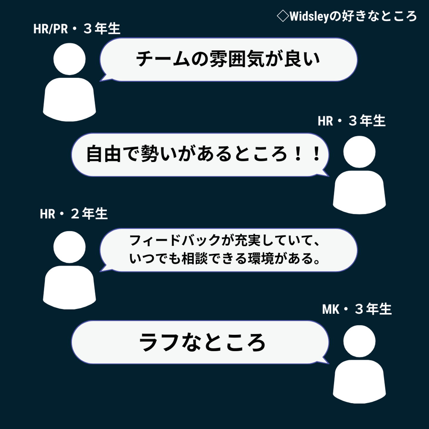 Widsleyの一人一人が裁量権を持って業務に取り組めたり、自分のチャレンジしたいことをやれる機会に溢れている環境がインターン生から好評のようです!
