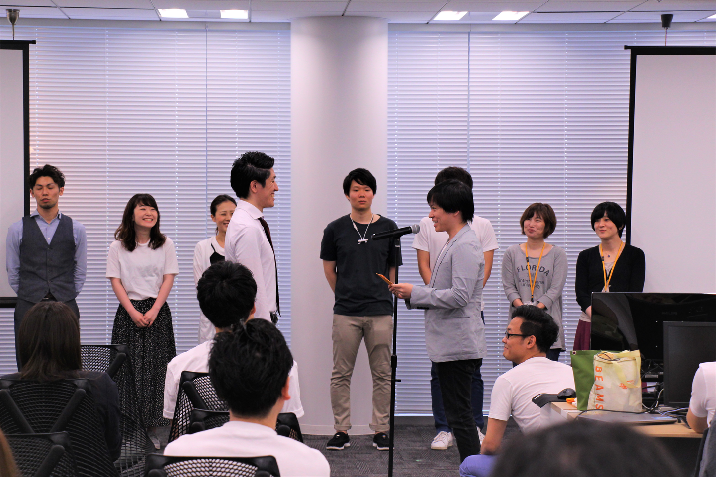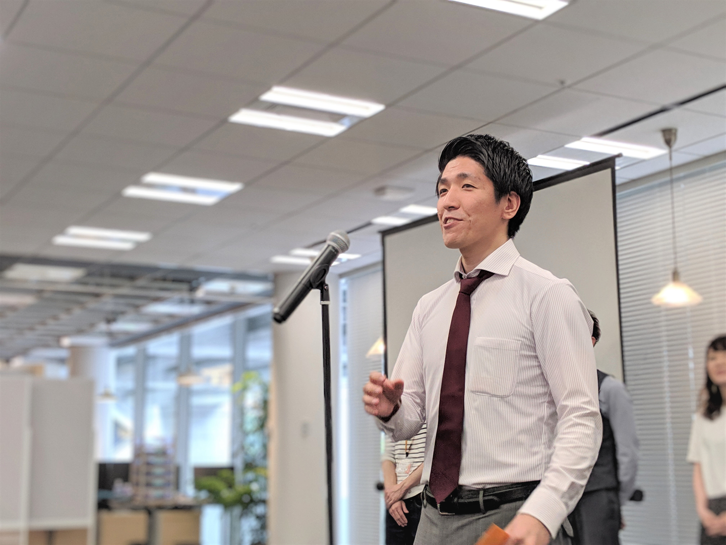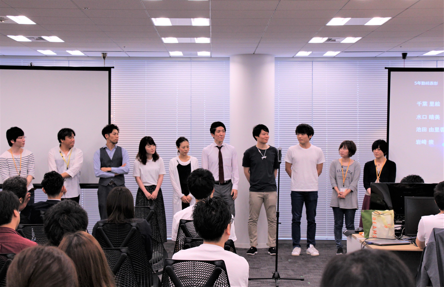 勤続5年で表彰されたのは10名。代表してセールス部門の高橋から、入社して5年経過して変わらないウィルゲートのカルチャーや、今後の意気込みについてのコメントがありました。