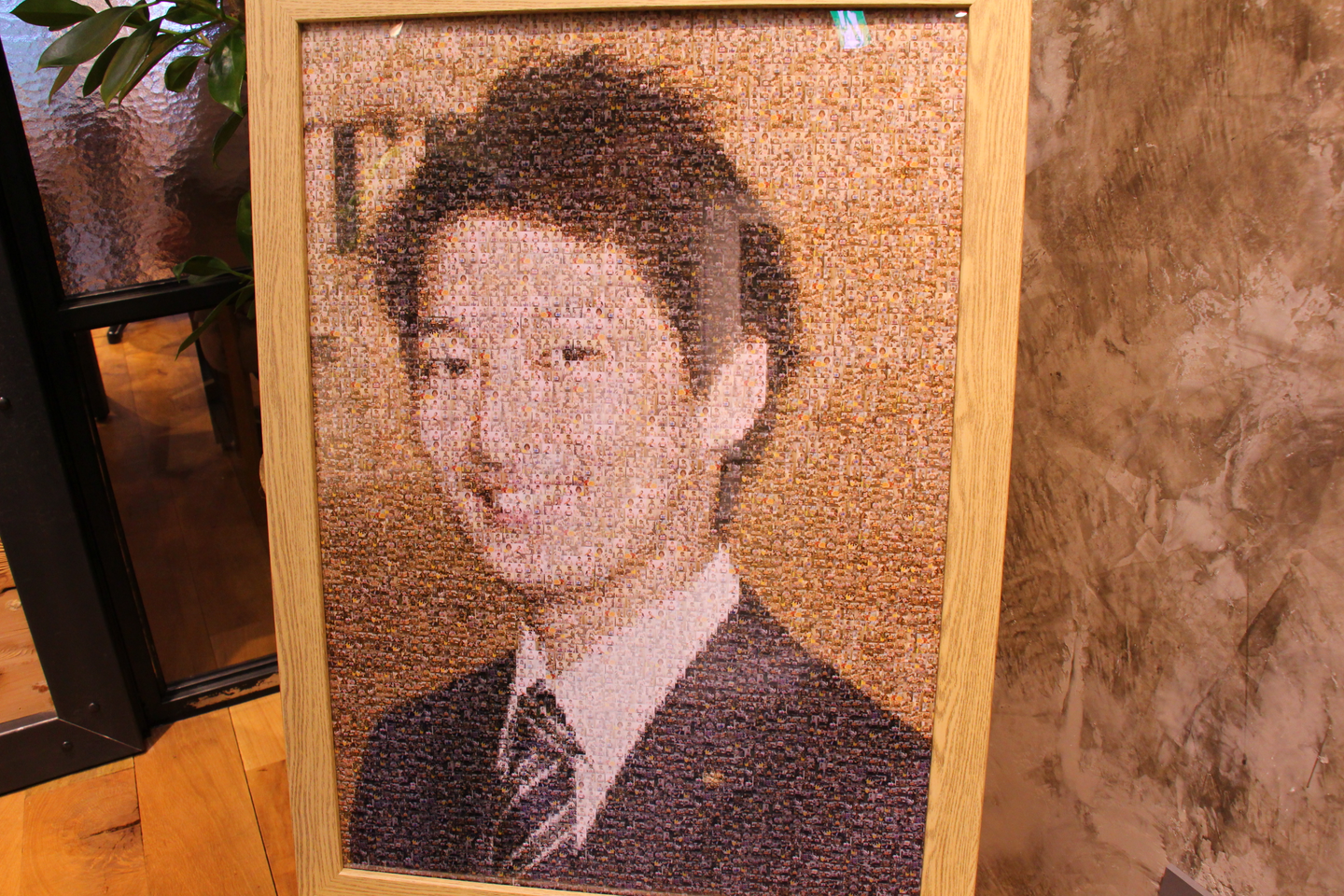 小島の誕生日イベントと同様に、今回も吉岡のポートレートが浮かび上がるモザイクアートを作成し、プレゼントしました。