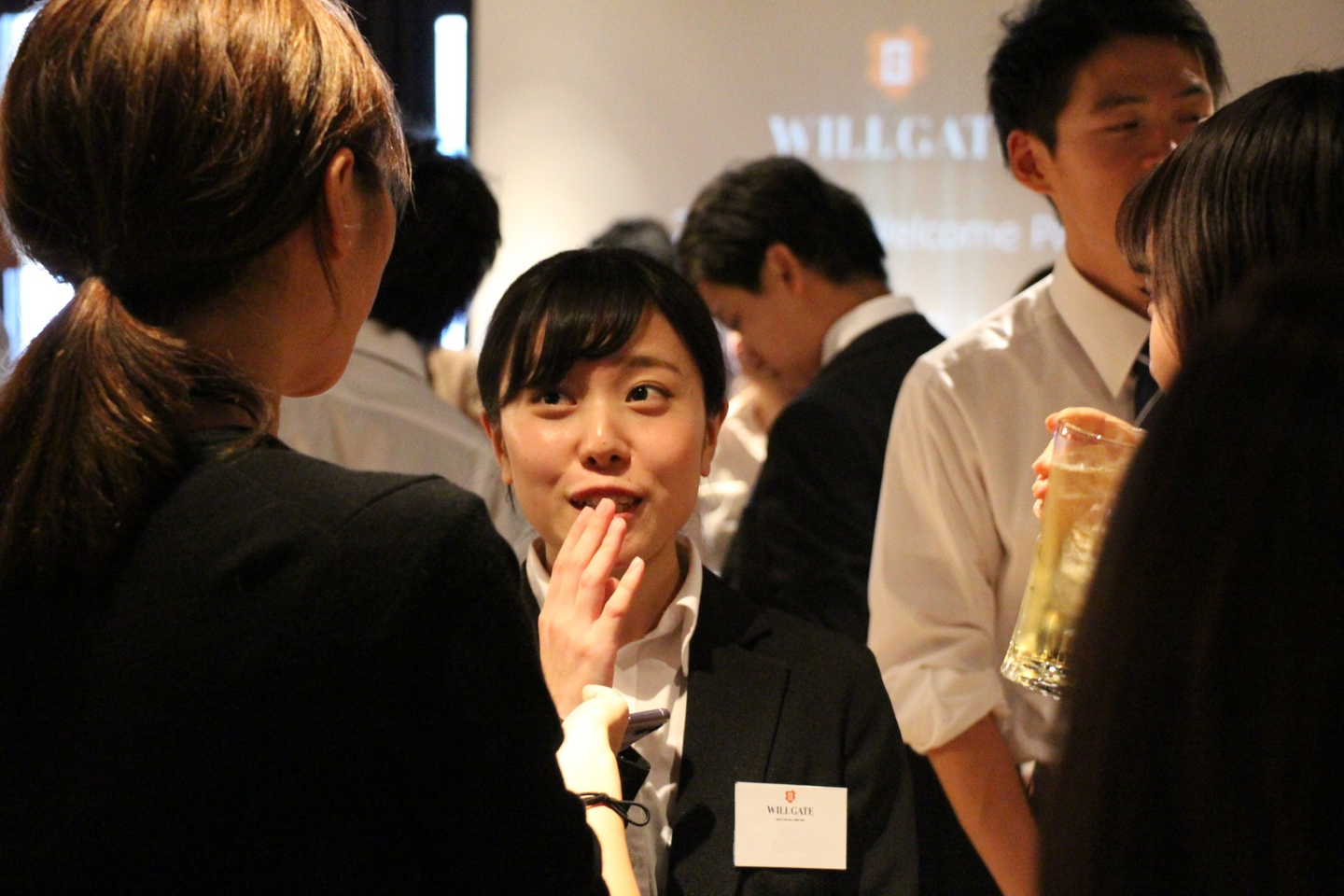 内定式の後は外部会場に移動し、ウェルカムパーティを開催。ウェルカムパーティには、役員・先輩社員も数多く参加しました。