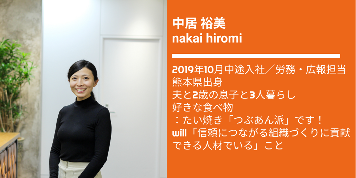社員インタビューVol.5です!今回は労務担当の中居さんにお話伺いました!