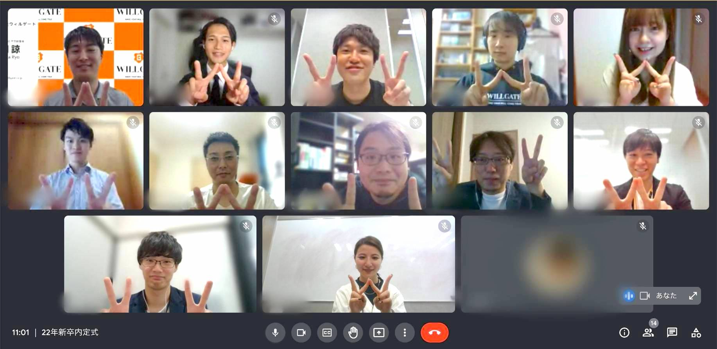 22新卒内定式はオンライン実施。