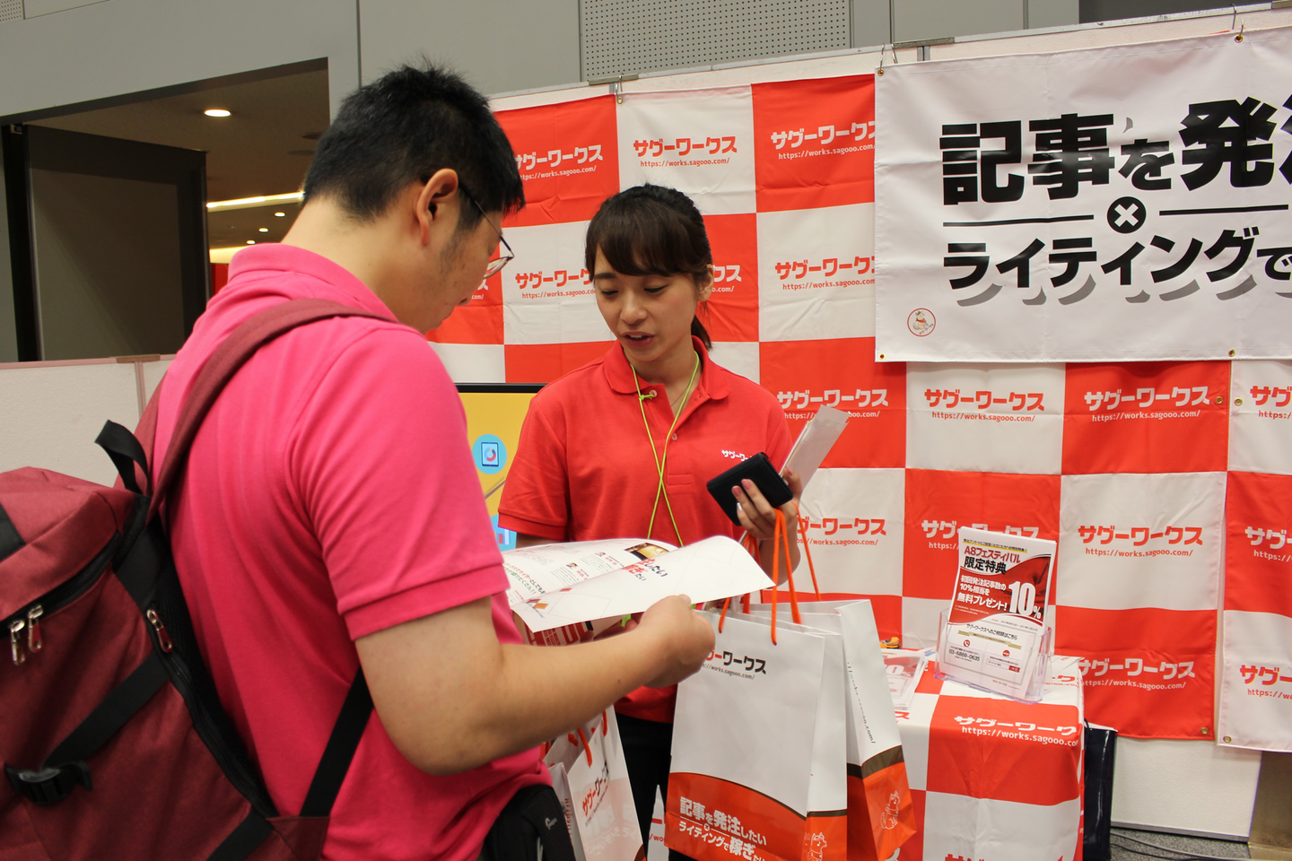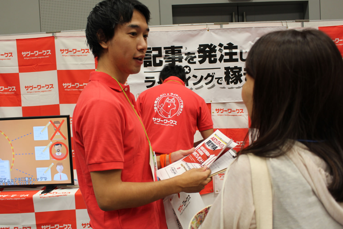 今回、ウィルゲートのブースで紹介したのは、ライティング特化型クラウドソーシング「サグーワークス」。取引企業が約1500社、16万人以上のライターが登録し、月間5万本を超える数の記事を作成しているサービスです。