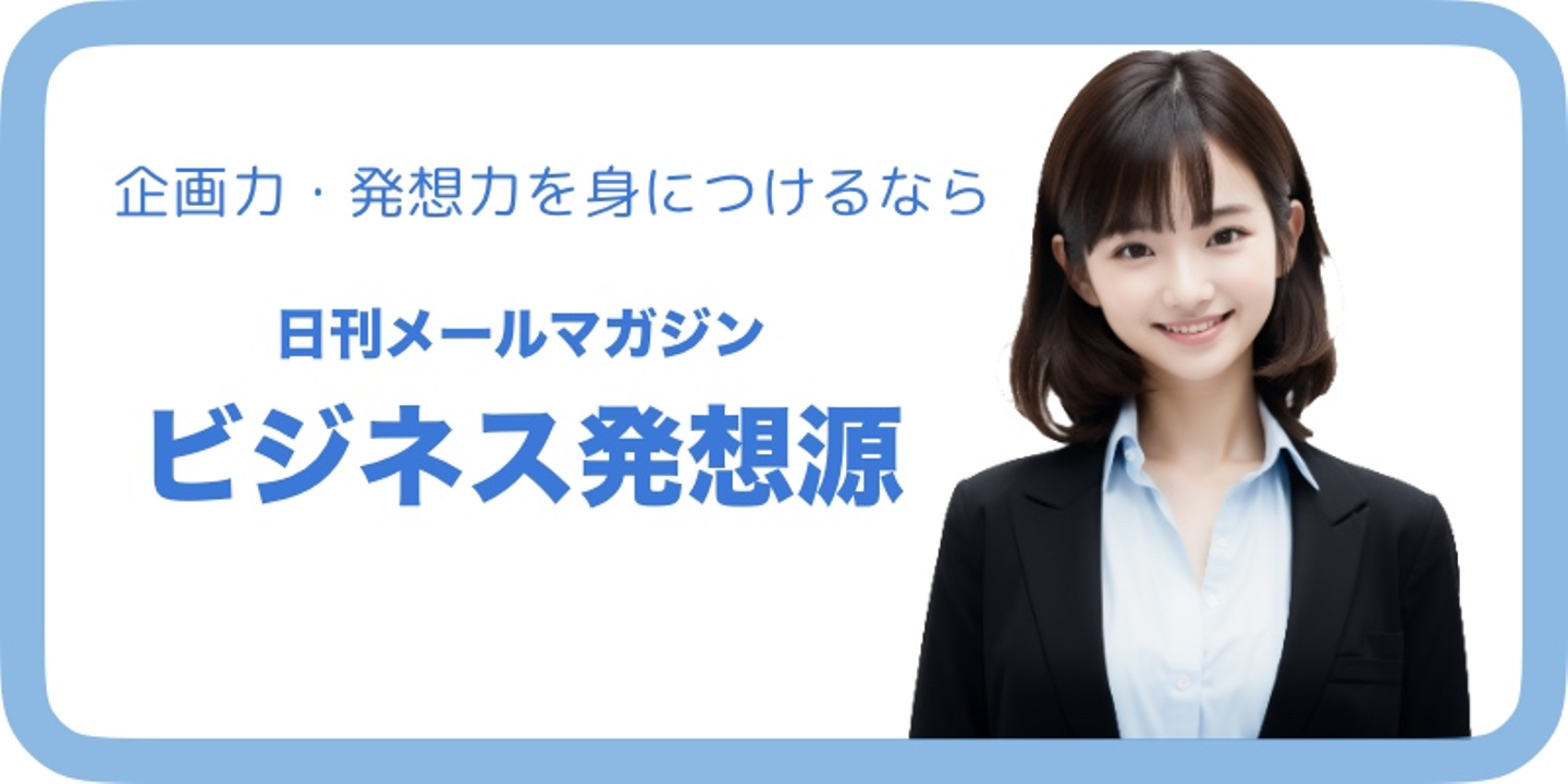 日刊メールマガジン『ビジネス発想源』は、日本一のメルマガを決める「まぐまぐ大賞」でビジネス部門第1位を5年連続受賞した、10万人以上のビジネスマンが読んでいるメールマガジンです。誰でも無料で読めますので、ぜひ目を通してみてください。