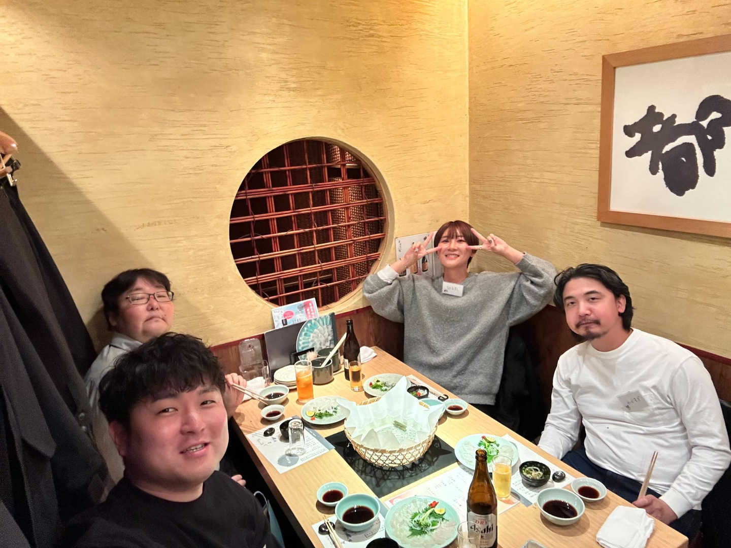 『フグを誰が一番上手に食べれるか選手権』をしたり、ヒレ酒のテイスティングをしたり趣味や仕事の話で盛り上がったり…🐡🍶
