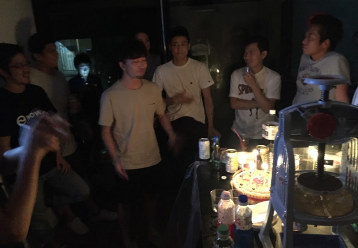7月誕生日ケーキのロウソクの炎が近くて熱い。