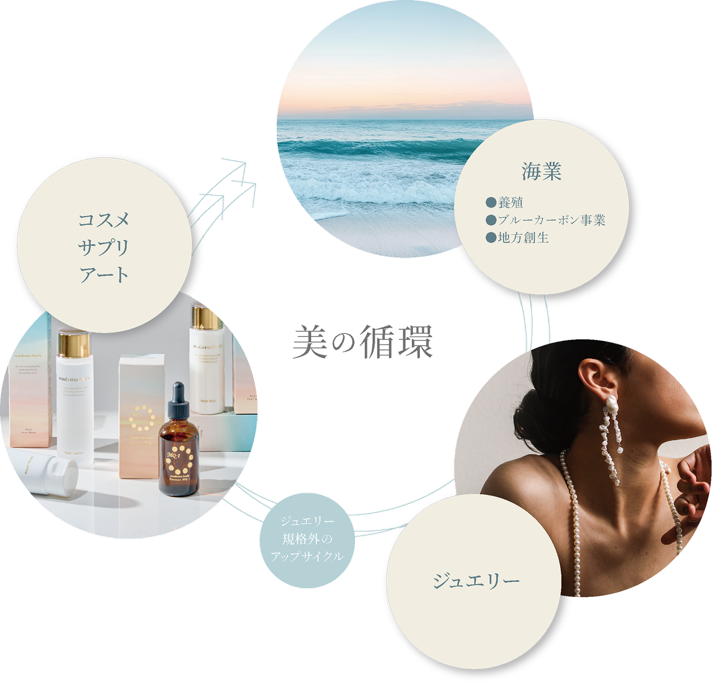 アップサイクル等の事業を通じて得たものを海に還元する「環境の美の循環」に加え、私たちは仕事の中でも「美の循環」を目指します。