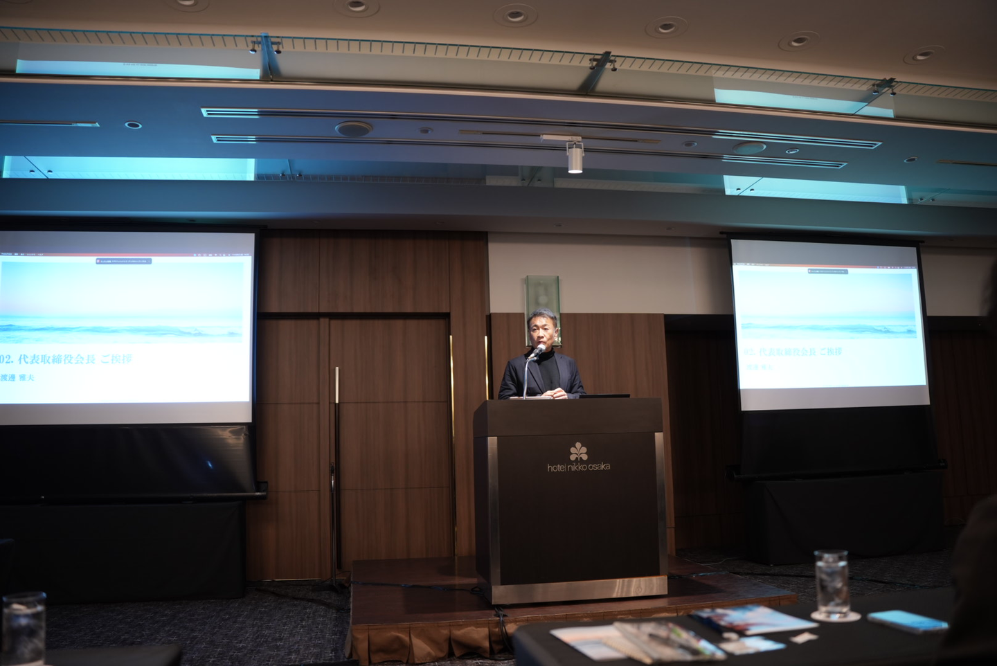 総会は渡邊会長、藪野社長のスピーチでスタート。