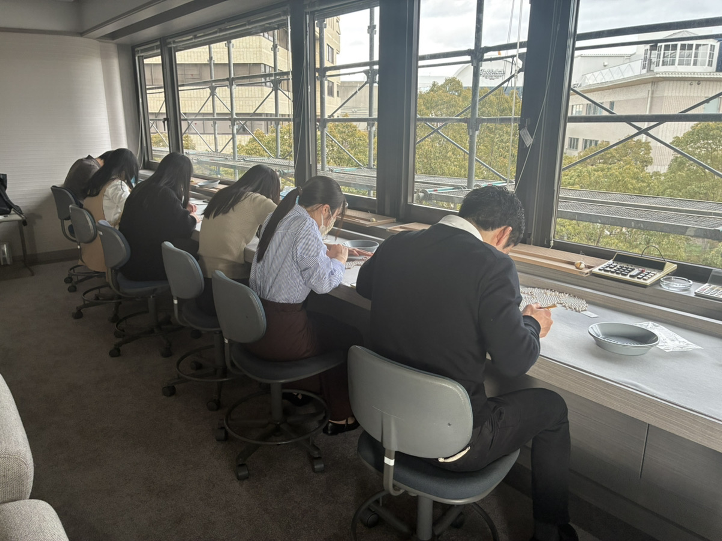 A: 普段はなかなかできない体験をさせていただきました。普段店舗で働いている私にとって、ネックレスをはじめとしたジュエリーは「当たり前にそこにあるもの」で...でも今回の研修で、ネックレスの連組を真珠を選別するところから体験して、1つのジュエリーができるまでこんなにたくさんの過程があるのだと知りました。