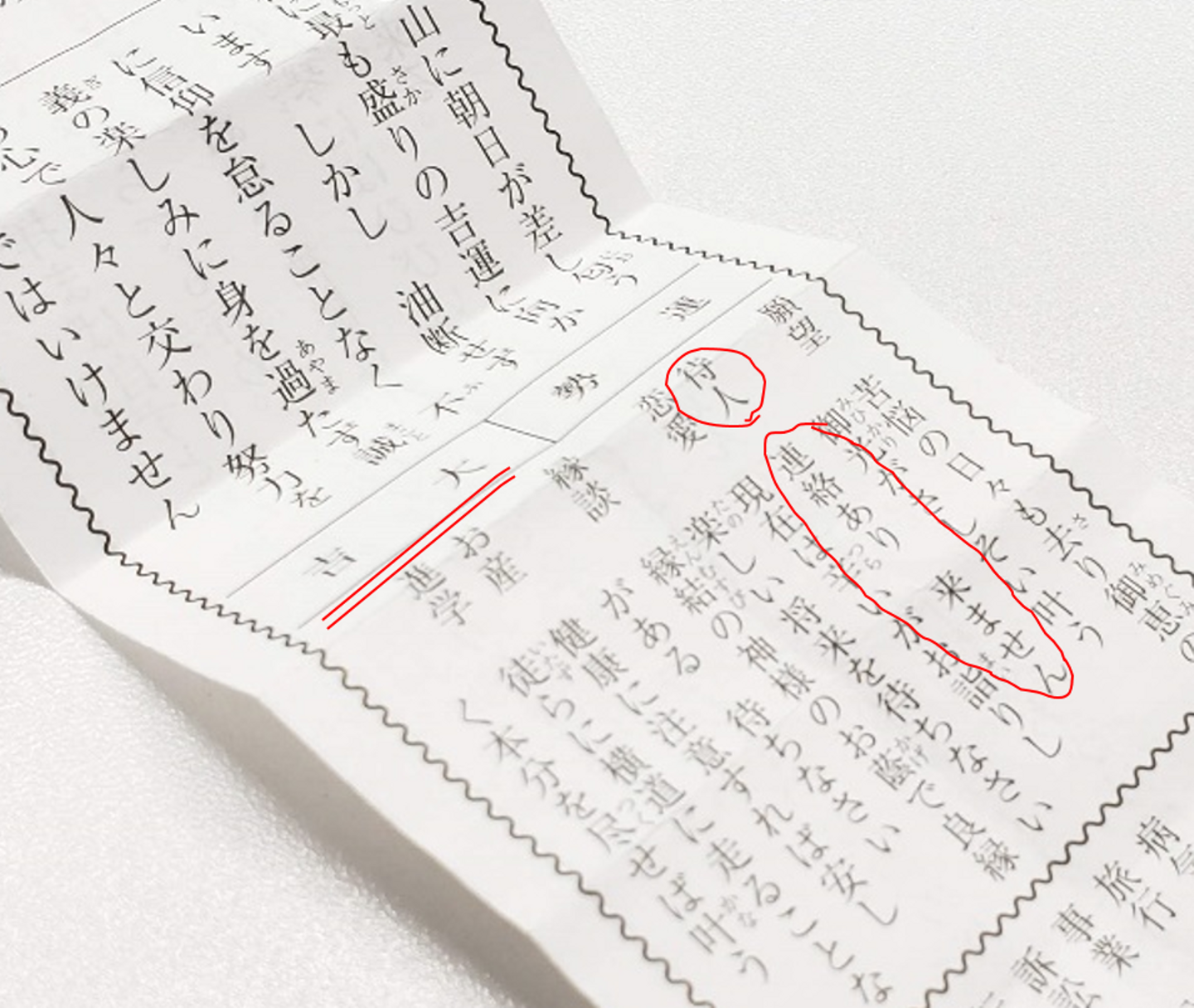 なお、待ち人。連絡はありますが、来ません。