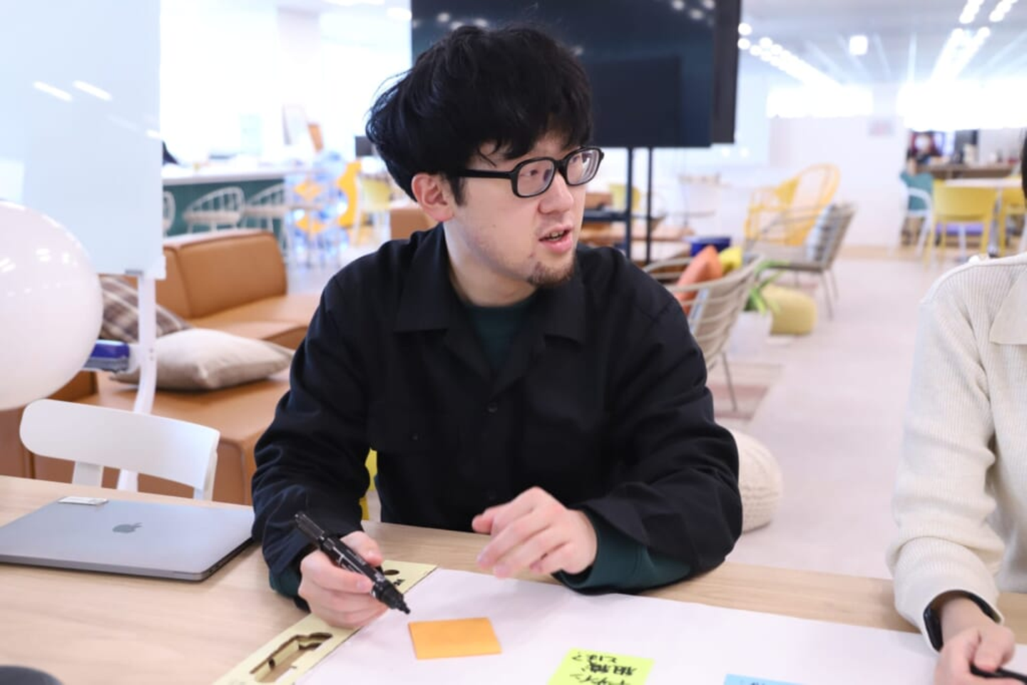 (藤崎)最初に参加者の方のお悩みや今日聞きたいことを付箋に書いてペタペタ貼って、一つ一つ深掘りしていき、参加者の抱える本当の課題を見つけて解決の糸口を一緒に探していきます。お話の内容によっては、別室に分けて1on1のような形態もとりますが、そうでない場合は会議室に参加者全員が集まって、参加者同士でも壁打ちをしていきます。
