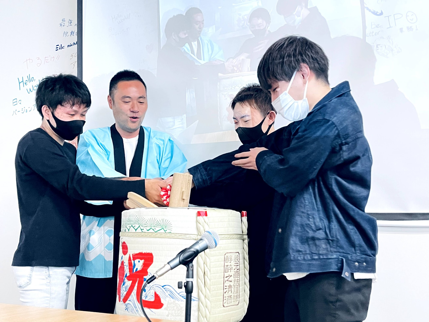 昨年2020年の5期生を迎えた入社式は、新型コロナウイルスの影響でオンライン入社式となりましたが、今年は緊急事態宣言もあけた事もあり、リアル開催(+オンライン対応のハイブリッド開催)を致しました。