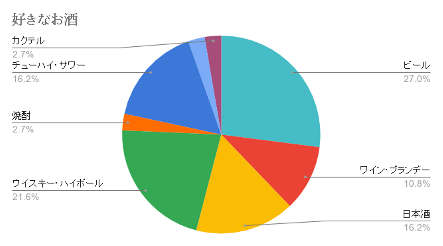 ビールが1位、ウイスキー・ハイボールが2位ですね。