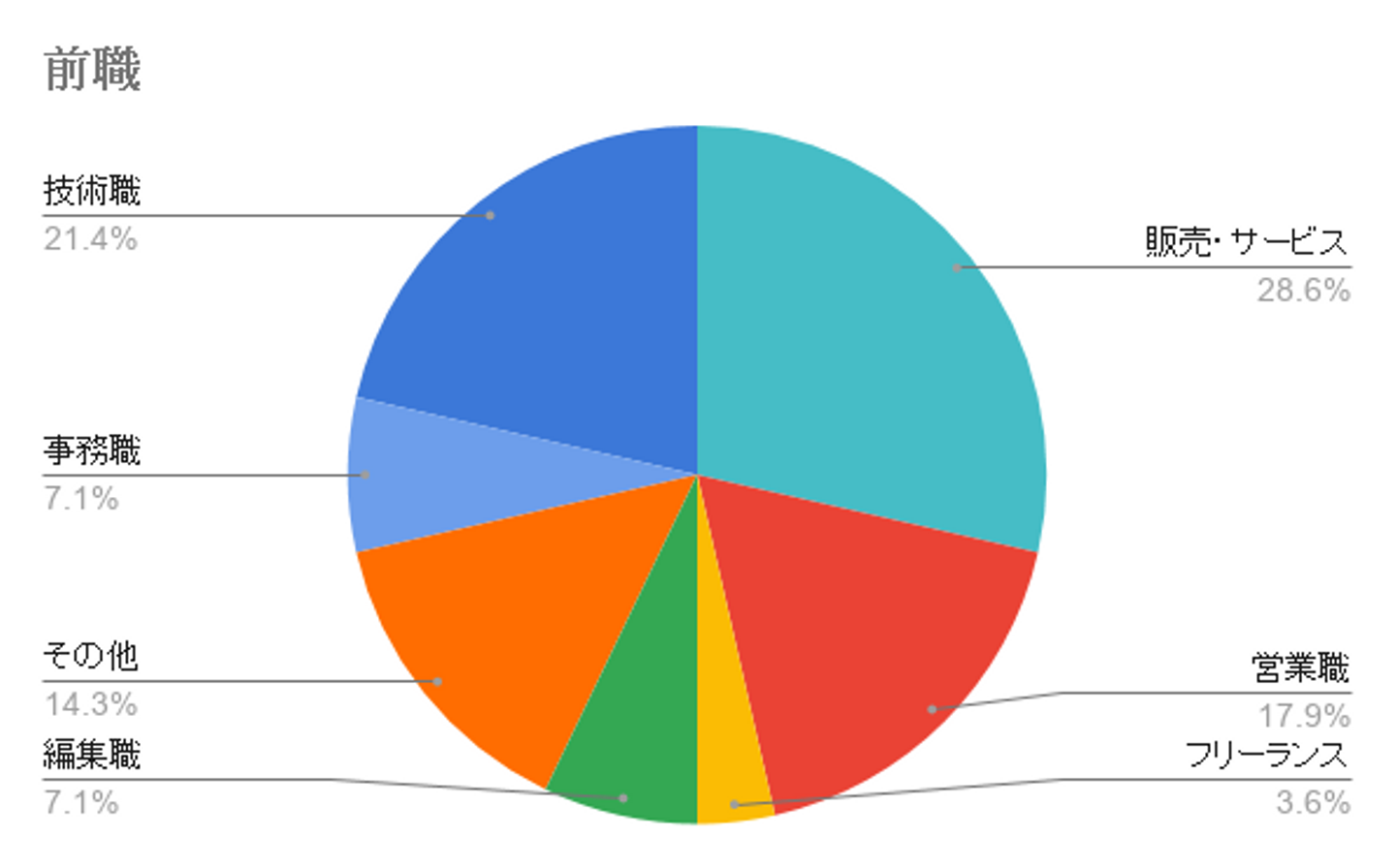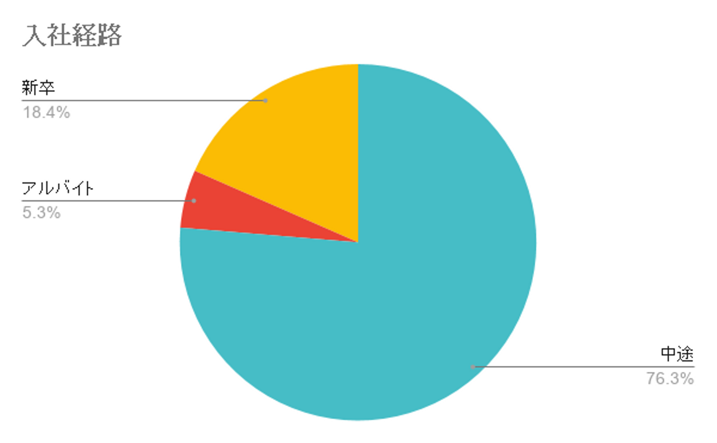 中途入社の方の前職を見ると、営業職などよりも販売・サービス業経験者が多いという結果に。