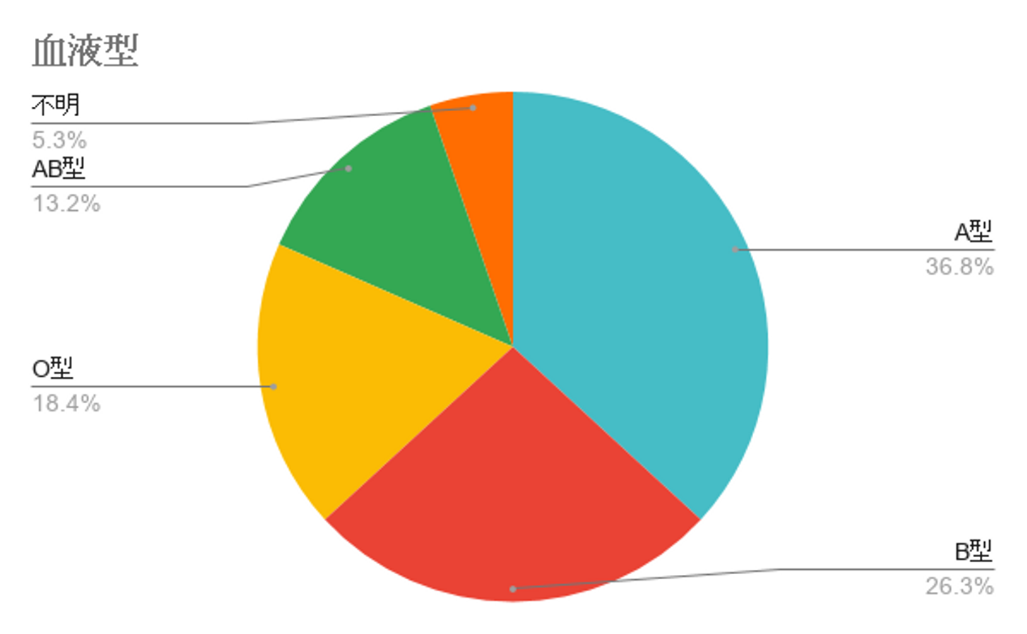 日本人の血液型の割合と比べると、ファイブニーズにはBとABが多いですね。