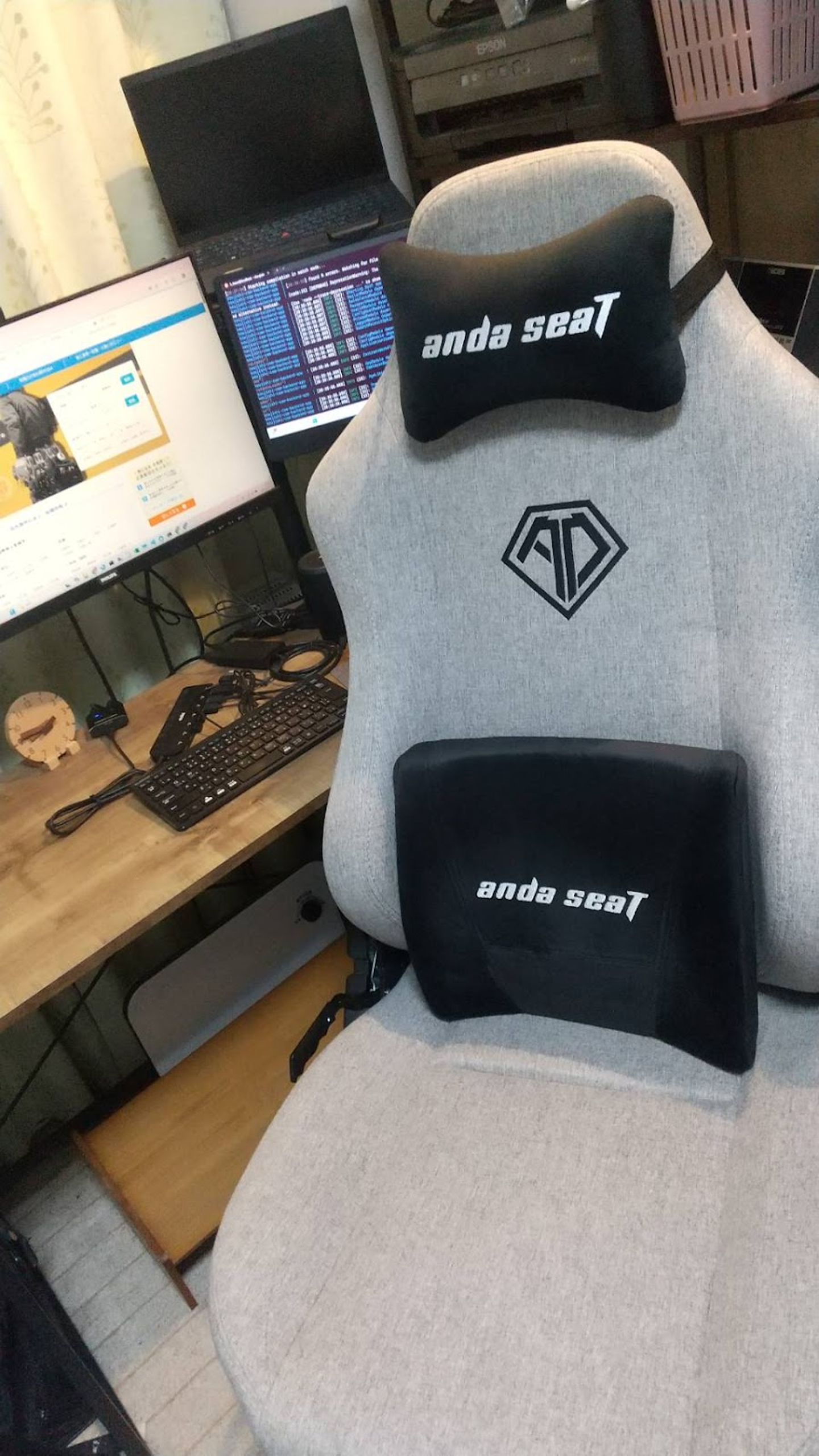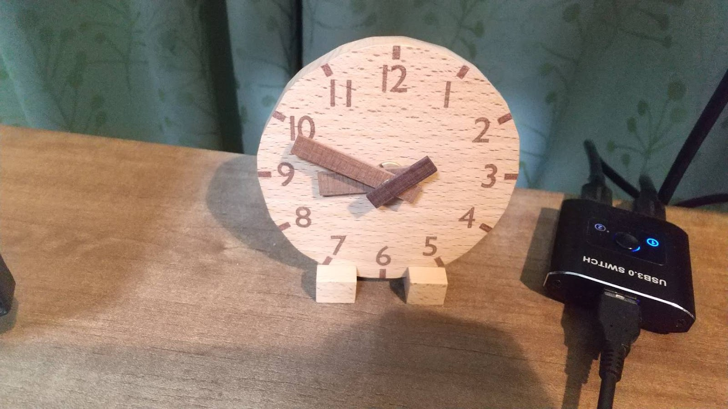 デスクには可愛らしい木目の時計が置かれ、作業の合間に時間を確認するたびに癒やされているそうです。