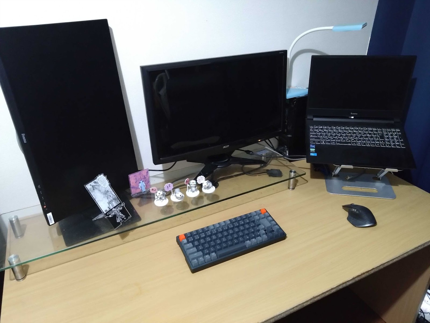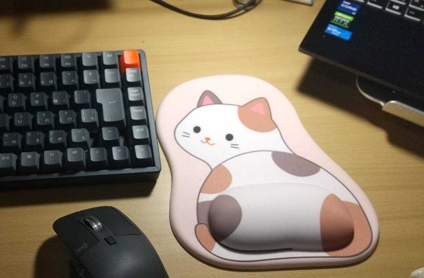 プニプニとした感触がたまらない猫型マウスパッドや、某猫フィギュアなど、遊び心のあるアイテムがデスク周りを彩ります。