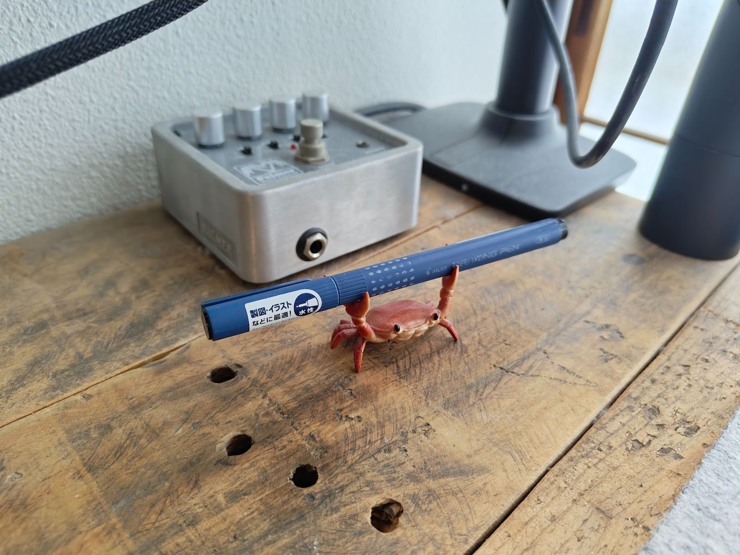 デスク周りの工夫:デスクマットとカニペンホルダー