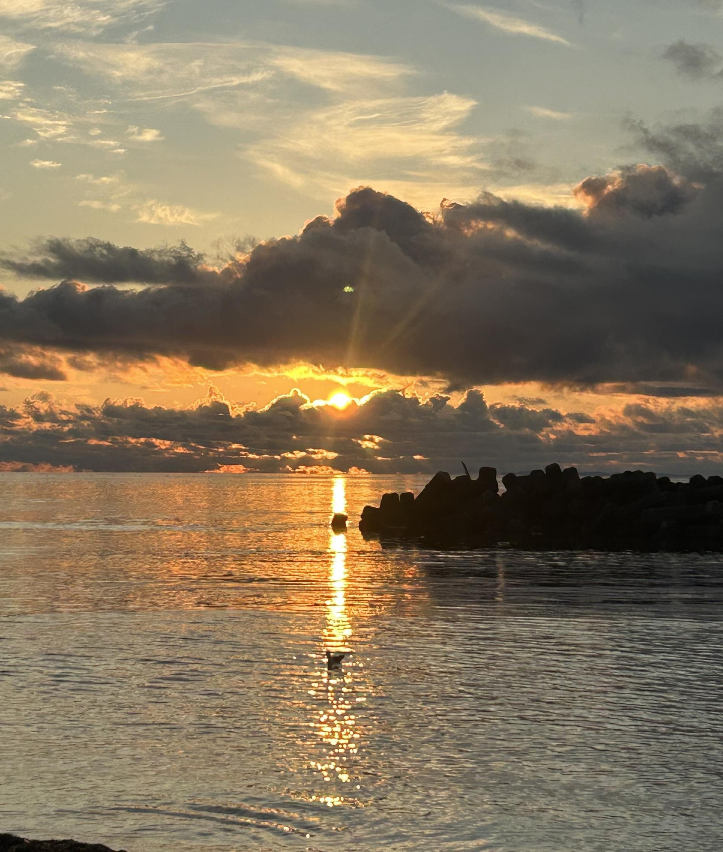 夏でもまだ肌寒いこの時間帯。澄んだ空気の中、浜辺でみる朝日は格別です。