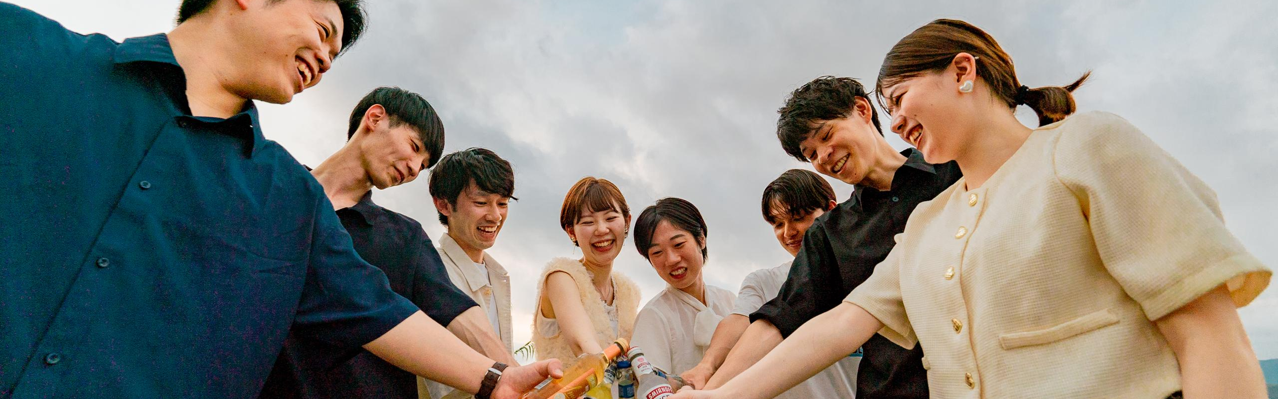 一緒に働く仲間、新郎新婦、取引先であるパートナー… 私たちは、関わるすべての人が、自己実現の為の挑戦や大切な人達との対話を通じて「誇れる未来を自らの意思と力で掴みとれる世界」を創ります。 その為、スキナでは「できるか」より「やりたいか」を最重視。 年次も肩書きも関係なく、意思ある人が手を挙げ挑戦の機会を手にできます。また、仲間・新郎新婦・パートナーとのやりとりにおいても、利害を超えた対話とその先にある信頼関係を築き、本音のコミュニケーションを乗り越えてこそ味わえる一体感や思いの共有を大切にしています。
