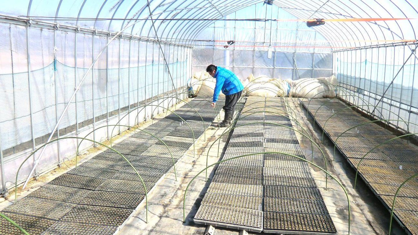 その為、この時期だけ特にこまめに位置や向きを変えることで均等に苗が大きくなるように世話をしているという訳です。