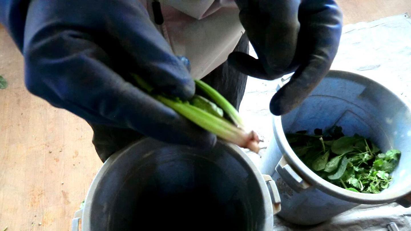 ほうれん草がどんどん流れて行きますよ!