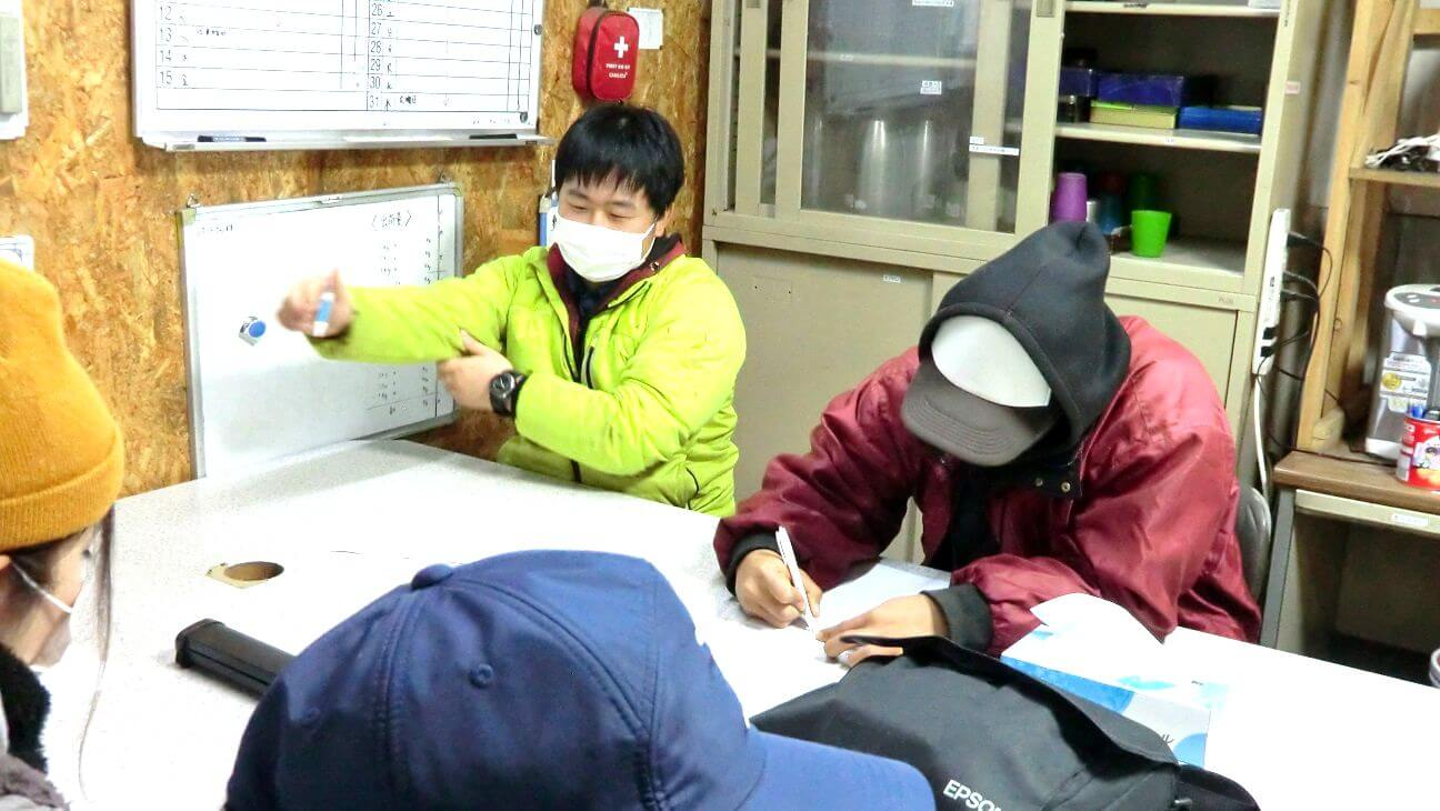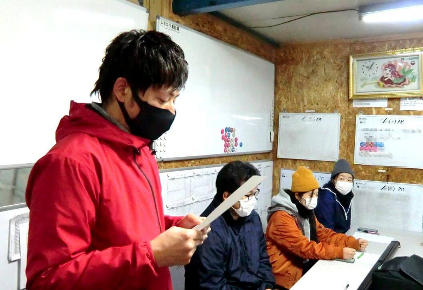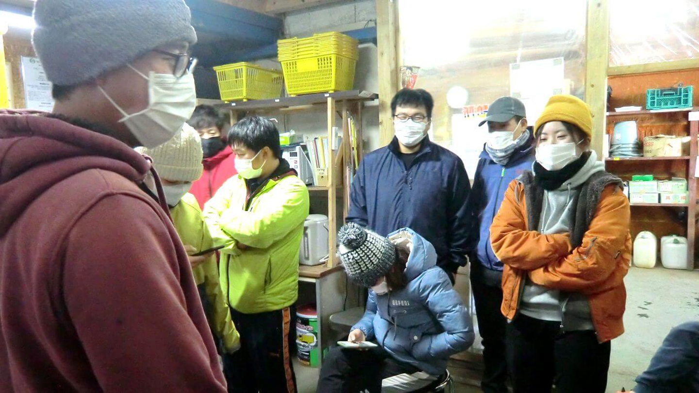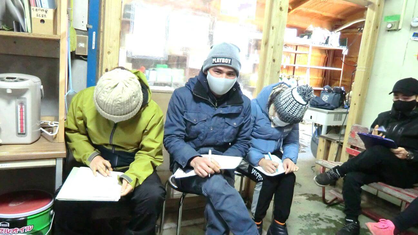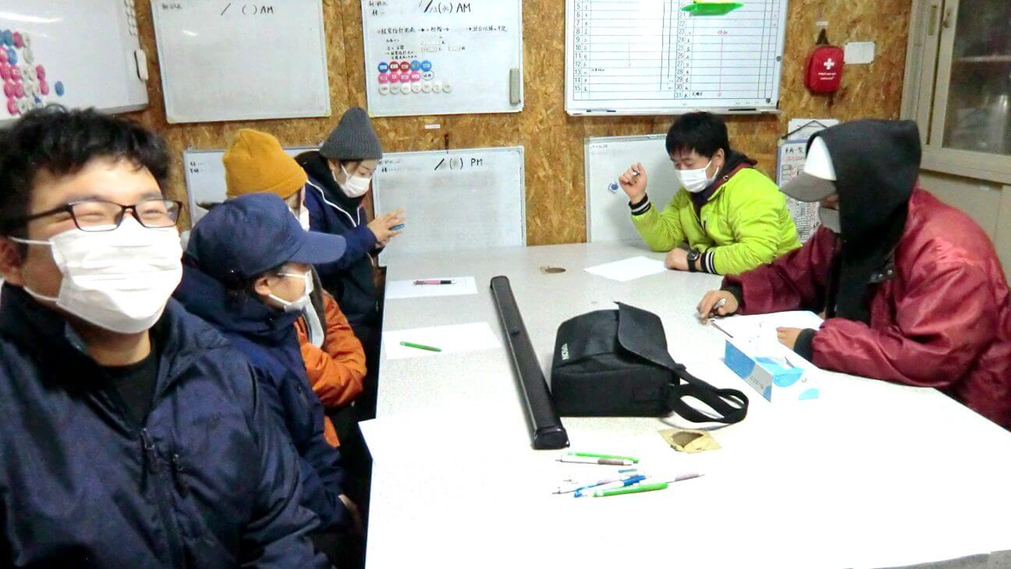 例年であれば初日に会場を借りて経営指針発表会を行ないますが、今年は新型コロナウイルス感染防止のため、休憩所で手短に行なわれました。