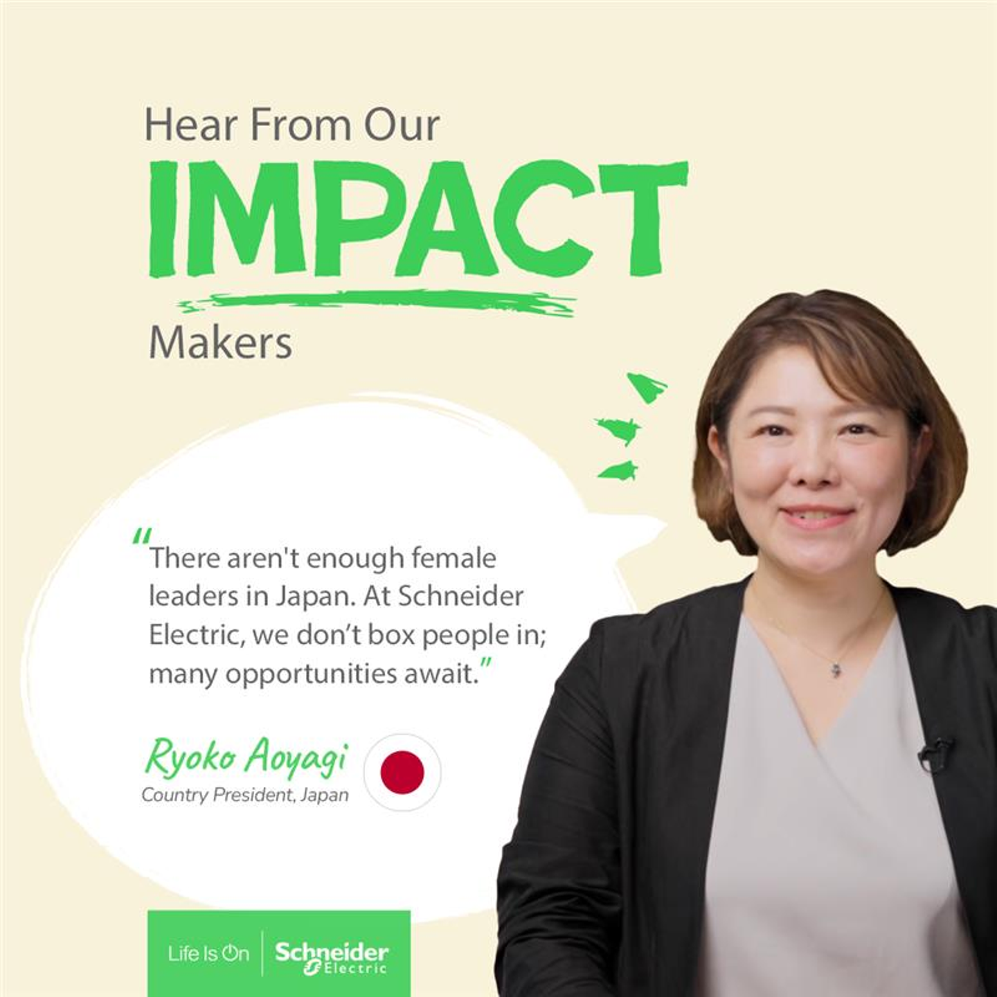 "個人的には日本には十分な数の女性リーダーがいないと感じています。シュナイダーエレクトリックでは人を枠にはめることはありません。夢を持ち続け、自分の声に耳を傾けてください。多くの機会があなたを待っています"