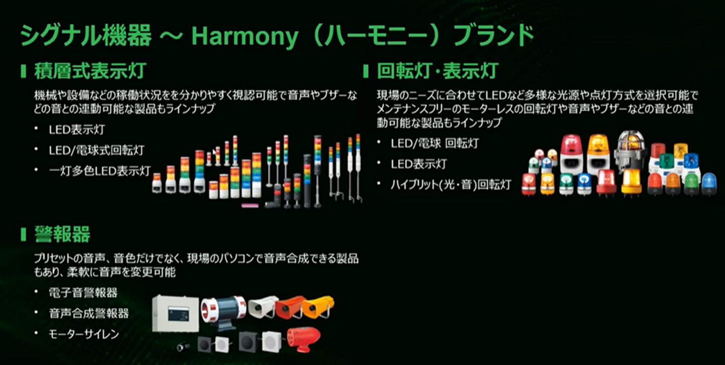 Harmonyシリーズは、操作・表示・安全に関わる製品を幅広く展開しており、以下のような用途に対応しています: