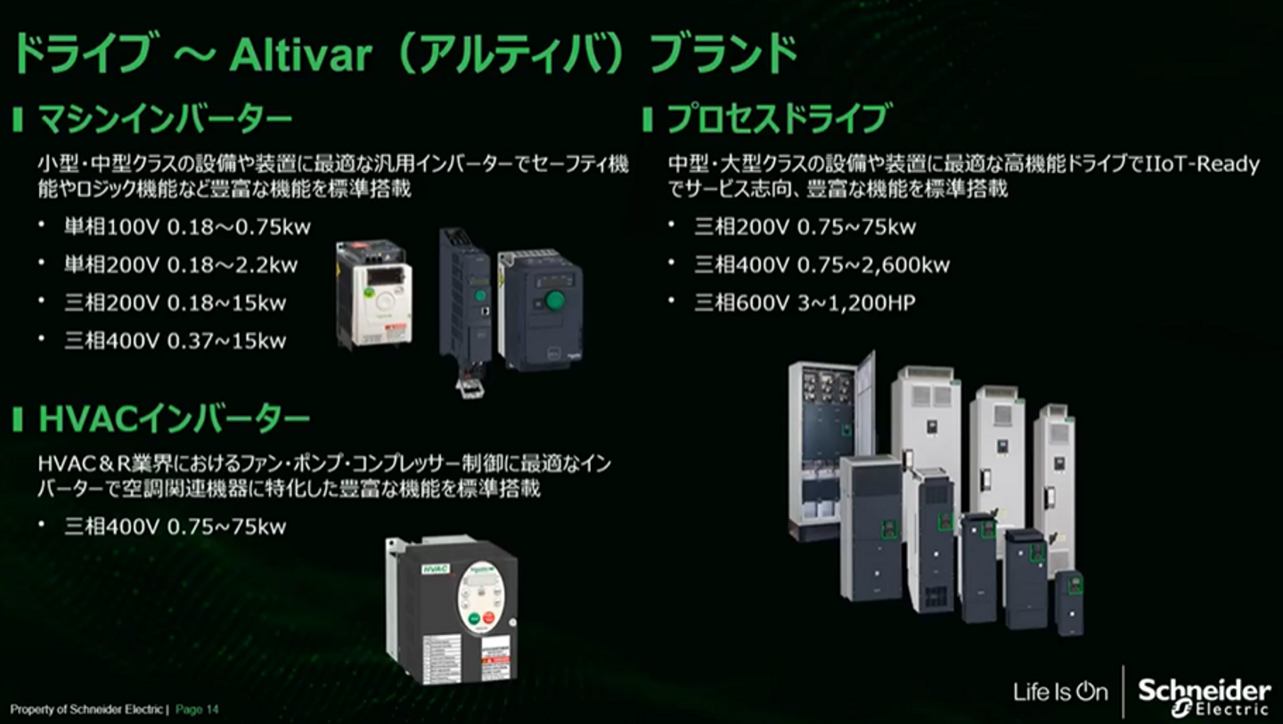 私たちの製品:⑤Altivarブランドのドライブ機器