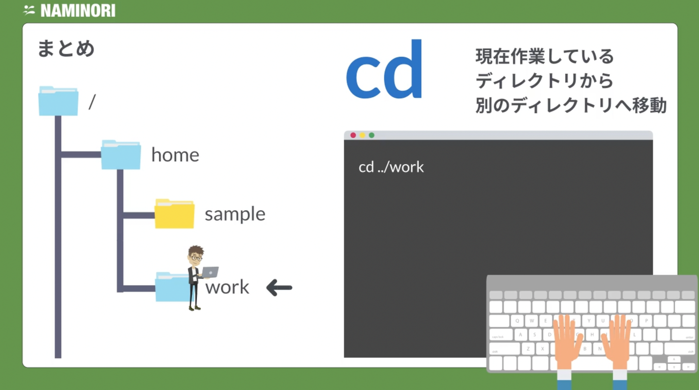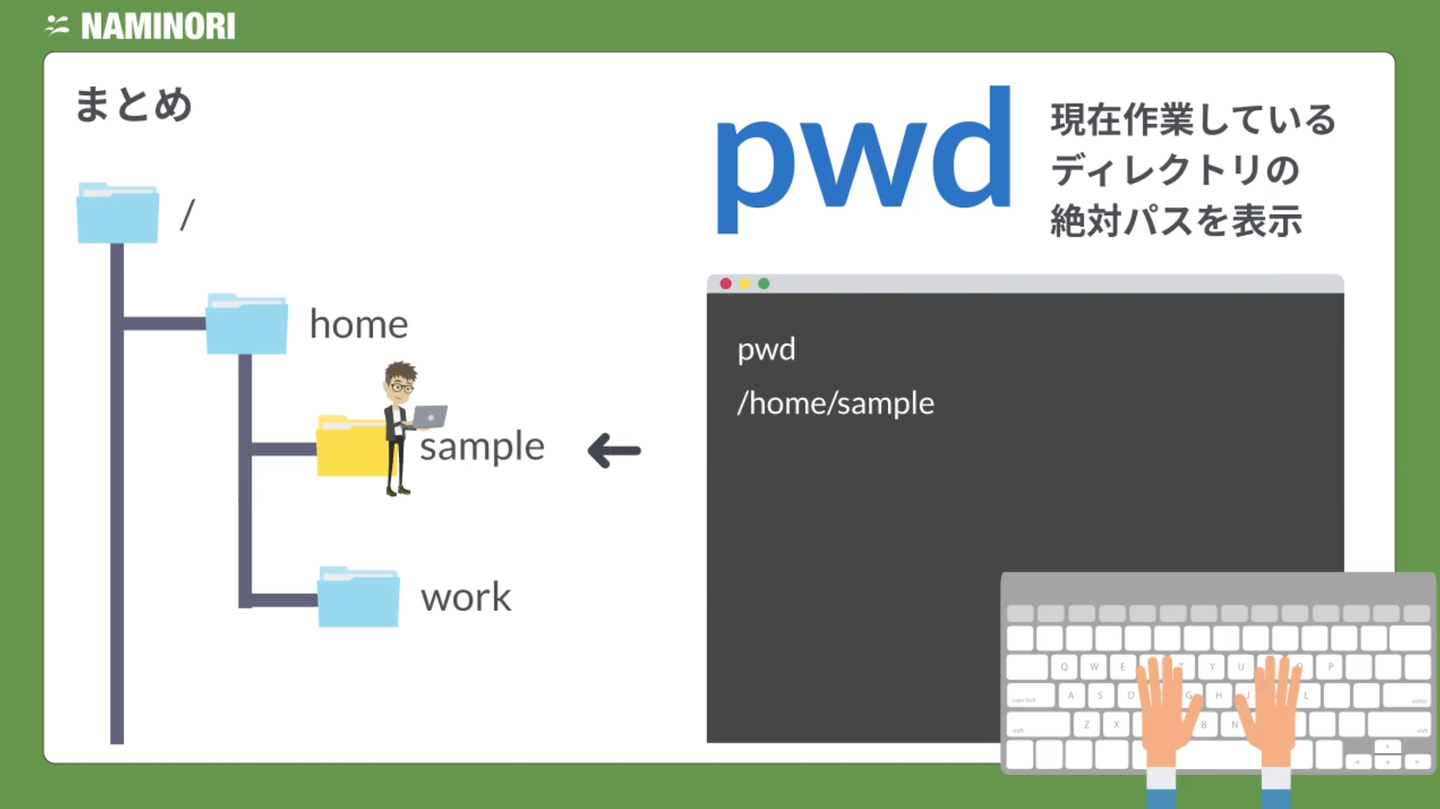 一番大事なのはcdコマンドとpwdコマンドです。