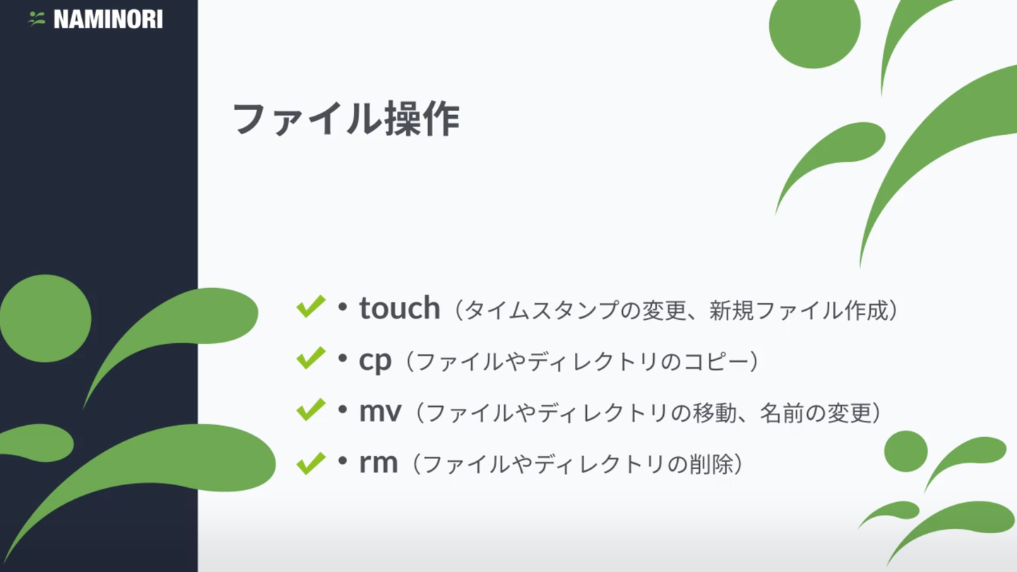 端的に言って、ファイル操作で覚えるべきコマンドは
