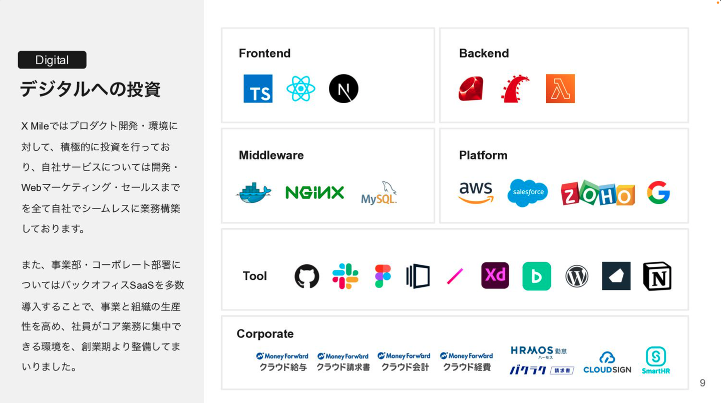 の2点が大前提としてありました。しかしこれらの2点であればX Mileに限らず大抵の自社開発系スタートアップであれば満たしていると思います。