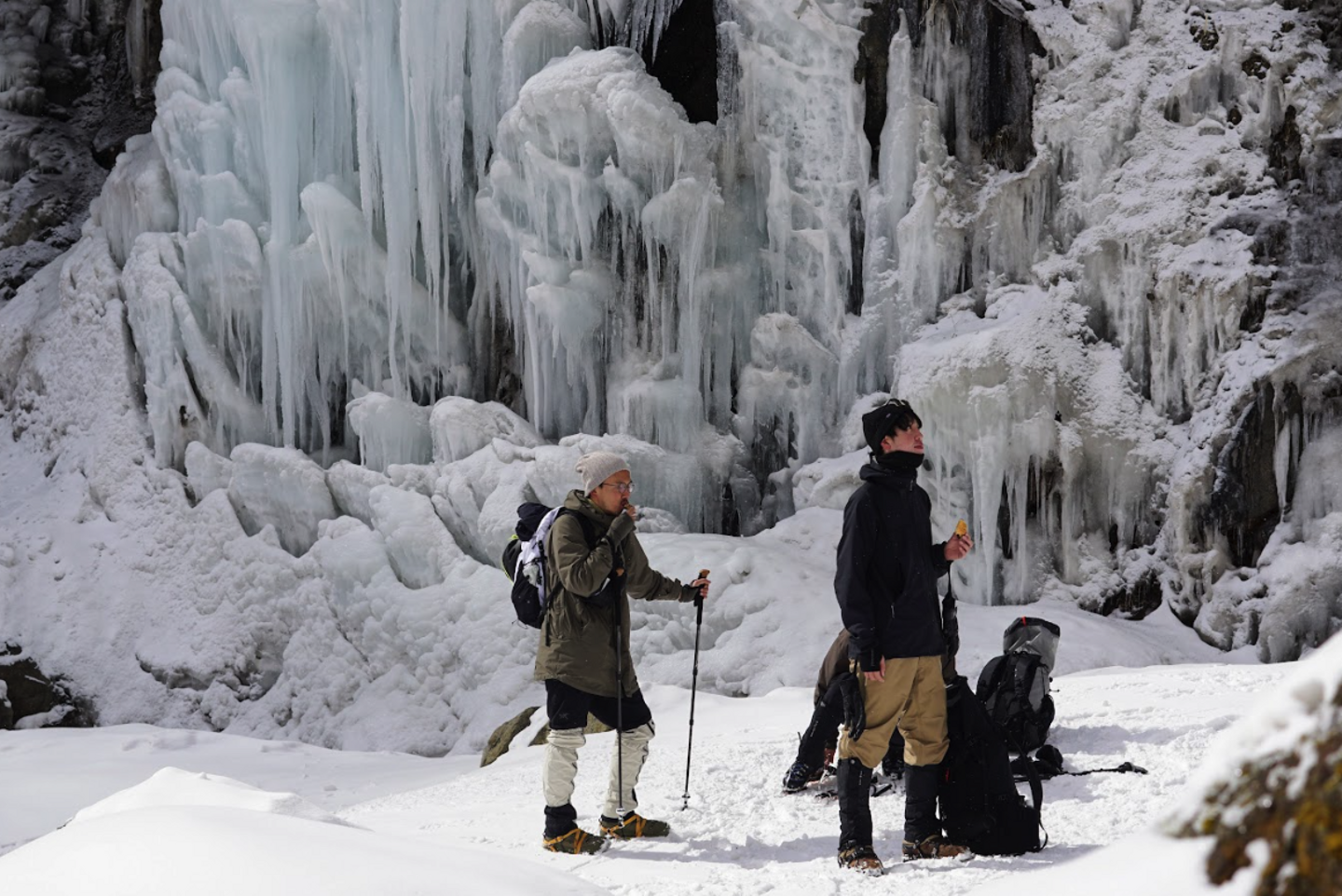 (2月に社内登山で日光の氷瀑を見にSTOREメンバーと行った時の写真。月に1度、社内登山に行ける機会があるので、商品テストしながら開発にも活かしている。一番左が石堀)