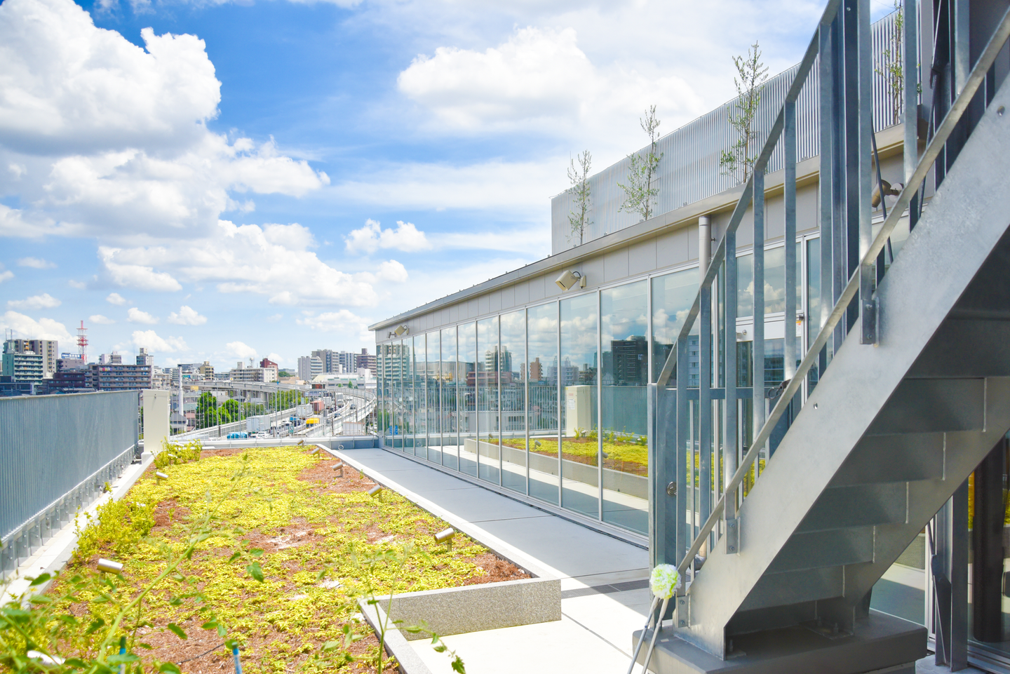 奥に進むと、外に出られるようになっていて、集中して作業した後は、屋上でリフレッシュも♪