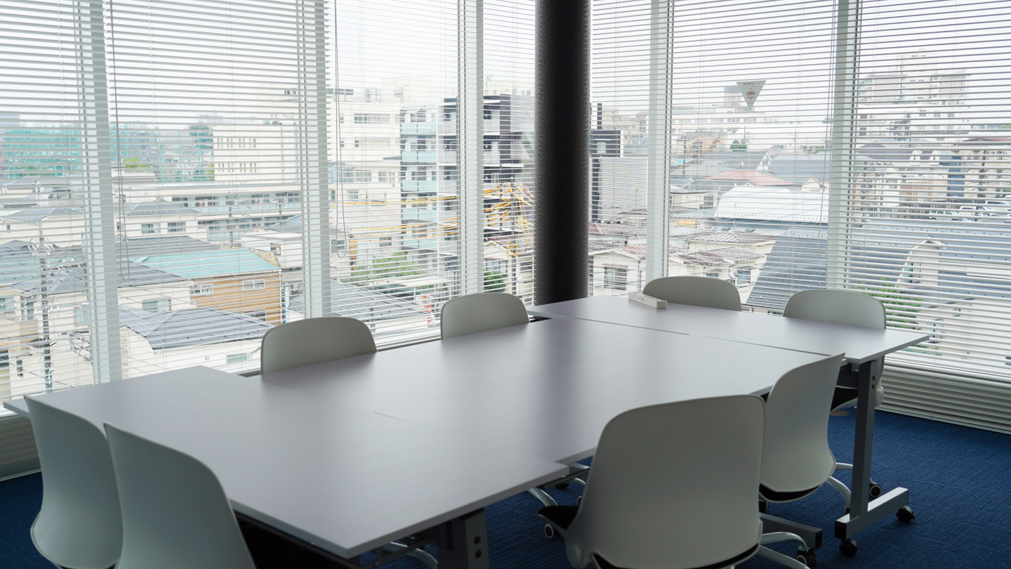 会議室は、開放的な全面ガラス張り仕様の部屋になっています。