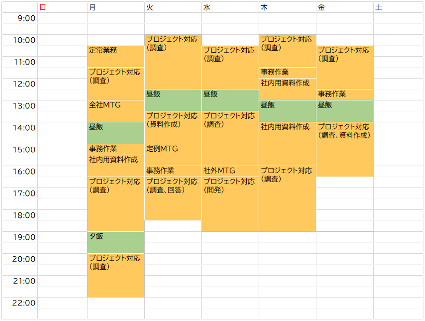 そして本題、まずは私のとある1週間のスケジュールをご紹介します。